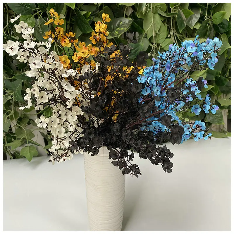 Enhance your space with this elegant artificial flower bouquet, crafted from high-quality silk material and available in a variety of stunning colors including black, blue, gold, light yellow, pink, purple, red, white, and yellow. Designed for indoor use, it is perfect for adding a touch of sophistication to weddings, parties, anniversaries, and home decor. The dense, lush arrangement features dark, rich hues that create a dramatic yet refined look, complemented by a textured clear glass vase. Its minimalist aesthetic with soft, warm ambiance makes it an ideal choice for elevating any celebration or everyday interior with modern elegance.