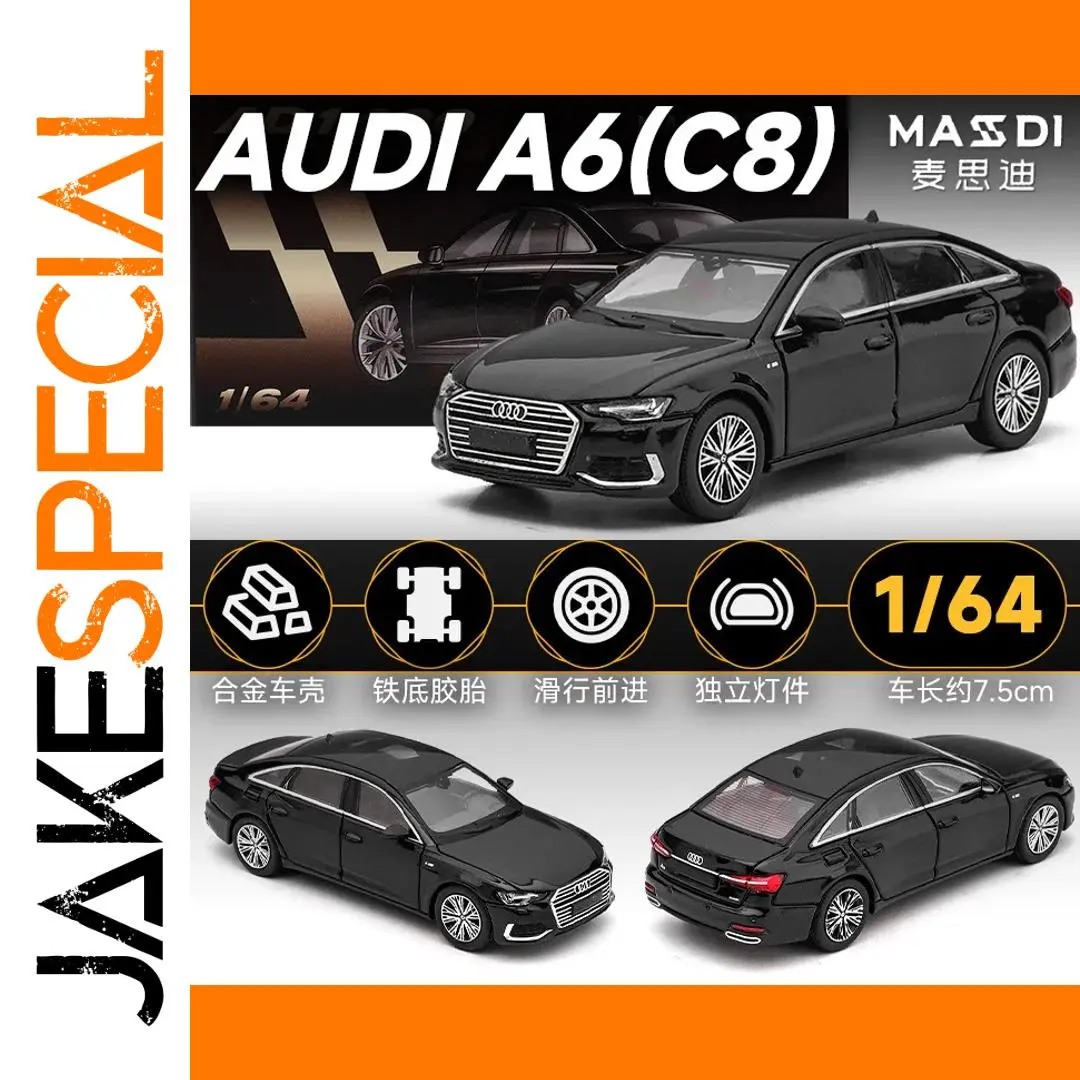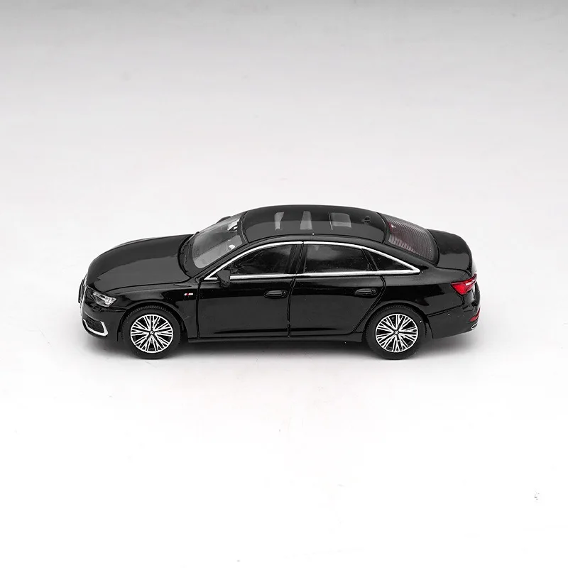 Enhance your collection with this meticulously crafted 1:64 scale diecast alloy model of the 2021 Audi A6L C8, featuring a sleek black finish and detailed design that closely mimics the real vehicle. Made from durable metal, this realistic sedan showcases a streamlined silhouette, signature front grille with interlinked rings, sharply angled headlights, transparent windows, and multi-spoke alloy wheels. Its high-quality craftsmanship highlights smooth, shiny surfaces and precise detailing on the rear LED-style taillights and subtle trunk spoiler. Perfect for adult collectors, this display piece captures the sophisticated elegance of the modern Audi A6L C8, offering a refined addition to any automotive collection.