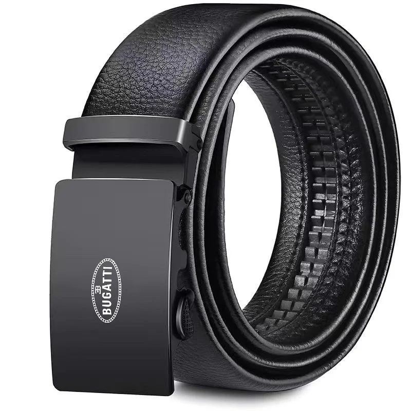 Experience the perfect blend of style and functionality with this luxury men's adjustable belt. Crafted from high-quality PU leather, it features a textured surface and smooth, finished edges that emphasize craftsmanship. The sleek black color ensures versatility, making it suitable for both formal and casual wear. The standout automatic metal buckle with a matte, brushed finish not only adds sophistication but also allows for easy wearing and removal. Its modern design, complemented by a subtle logo detail, exudes contemporary luxury. Whether paired with jeans or suit pants, this belt elevates your look effortlessly. Its durable construction guarantees longevity, making it an essential accessory for the modern, fashion-conscious man seeking elegance and practicality.