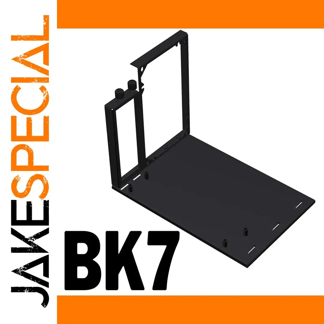 Enhance your high-performance gaming or professional workstation with this durable black BK7 bracket, specially designed for M.2 NVMe key M to PCIe 5.0 x16 eGPU adapters. Crafted from high-quality metal, its minimalist design offers a clean, modern aesthetic while ensuring secure mounting and optimal support for your graphics card. The flat rectangular base features precisely placed mounting points and notches, providing excellent stability during use. The vertical support structure adds strength without compromising space, making installation straightforward. With subtle textured knurled knobs for adjustment and secure fixation, this bracket blends engineering precision with aesthetic simplicity. Its sleek black finish complements any setup, making it an ideal addition for professional or gaming environments looking for both form and function.