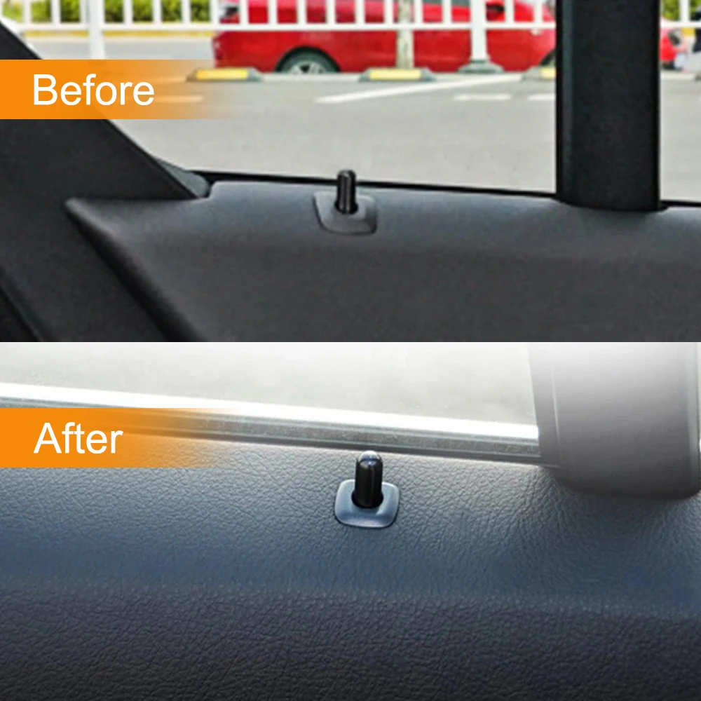Enhance your BMW with this durable ABS+PC car door latch pin and screw knob cap cover set, measuring approximately 3 cm in length and weighing only 10 grams per piece. Compatible with a wide range of BMW models including F10, F02, F07, E70, E84, E90, F35, F18, E89, X1, X3, X5, 330i, and 325i, it features a sleek black finish that seamlessly blends with your vehicle’s high-performance aesthetic. Designed for both front and rear doors, with a special bottom fixed buckle for BMW F18 models from 2010-2017, these components offer a simple, reliable upgrade or replacement to maintain your car’s refined look and functionality.