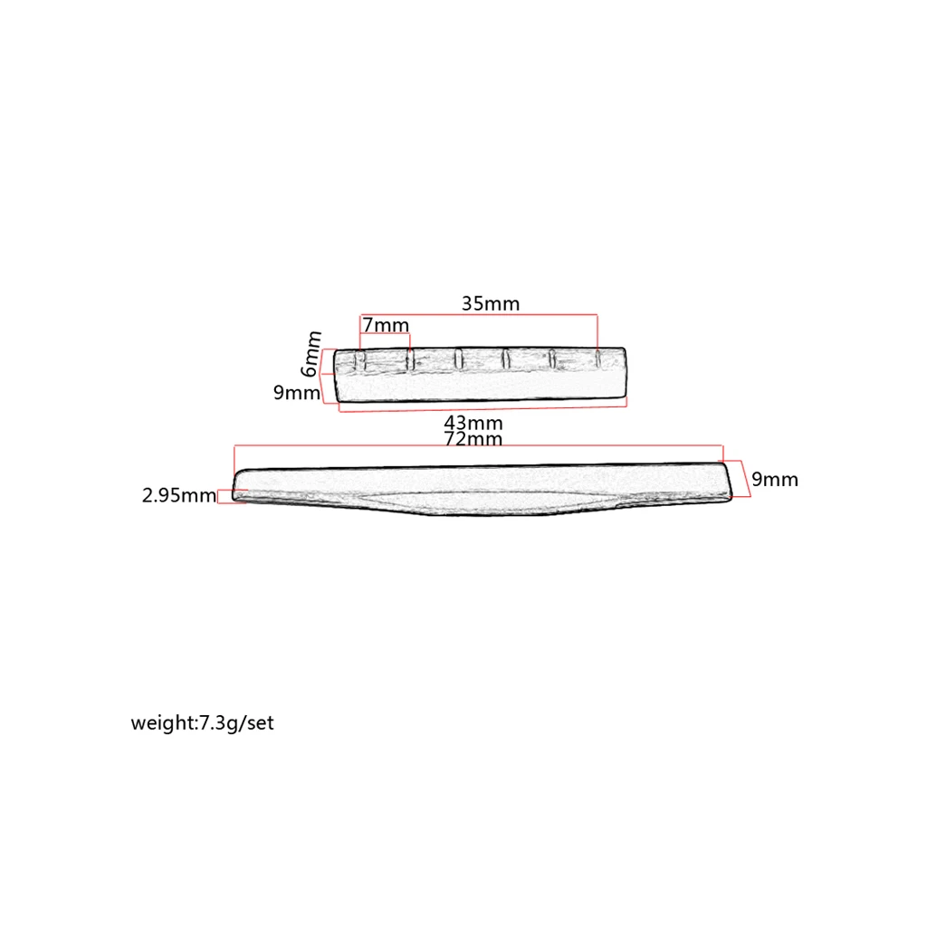 - Includes a bone saddle (72 x 8 x 3mm) with a refined, natural black color, providing excellent resonance and stability for folk acoustic guitars. The smooth surface enhances tonal clarity and durability.