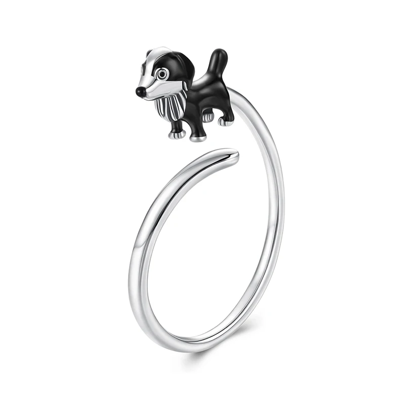 Imagine adorning your finger with this beautifully crafted open ring, capturing the lively spirit of your favorite pet. Made from high-quality 925 sterling silver and enhanced with enamel detailing, this piece showcases a detailed, three-dimensional black and white Border Collie dog design. The playful, cartoon-like animal figure features realistic fur texture, expressive eyes, and a cheerful expression, perfect for pet lovers. With a slim width of 0.15 cm and a ring size around 0.8 cm, it offers a delicate yet captivating look. Its polished silver surface adds a luxurious touch, making it an ideal accessory for casual or special occasions. This jewelry piece is a heartfelt tribute to your furry friend or a thoughtful gift for someone special.