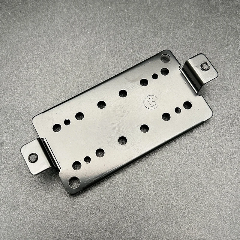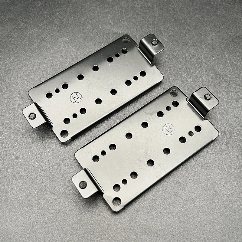 Enhance your LP-style electric guitar with these high-quality brass humbucker pickup base plates, available in black finish. Designed for neck and bridge positions, each plate features adjustable pole pieces arranged in two rows, with pole spacings of 50mm and 52mm to ensure precise sound customization. Made from durable metal, these replacement parts offer a sleek, industrial look while guaranteeing longevity and reliable performance. The package includes two base plates, crafted to seamlessly fit LP-style guitars and provide optimal sustain and tone during your playing sessions. Upgrade your instrument with these sturdy, functional components designed for serious guitar enthusiasts.