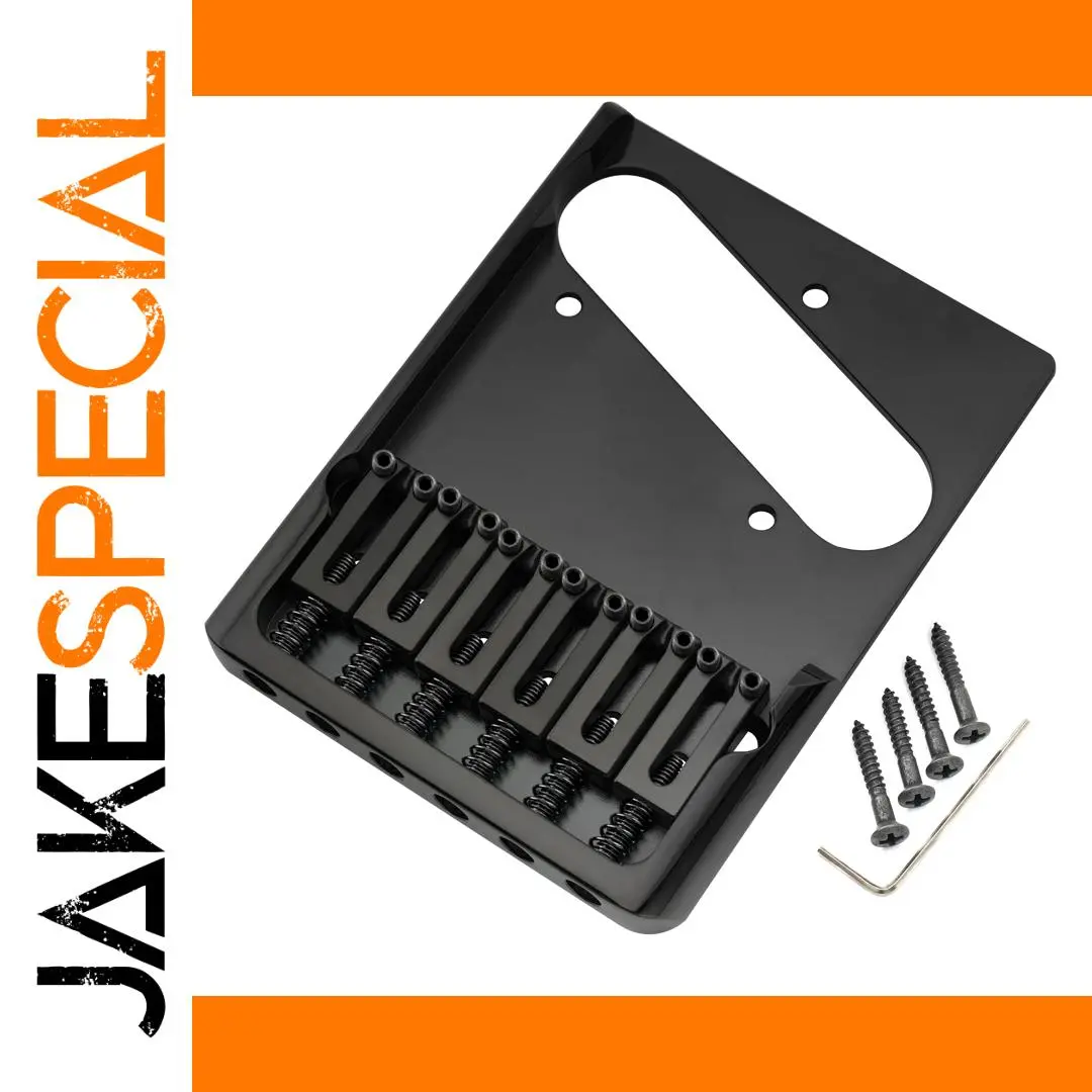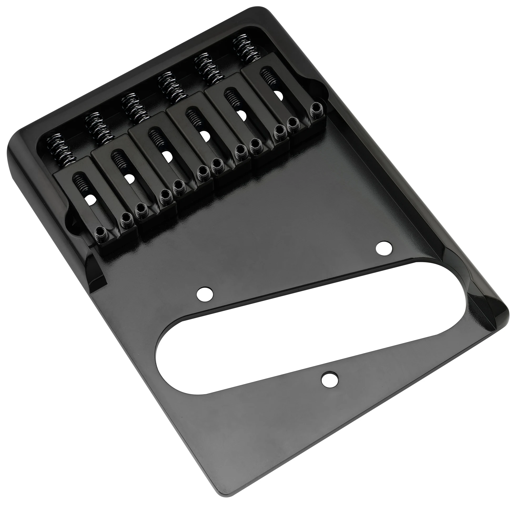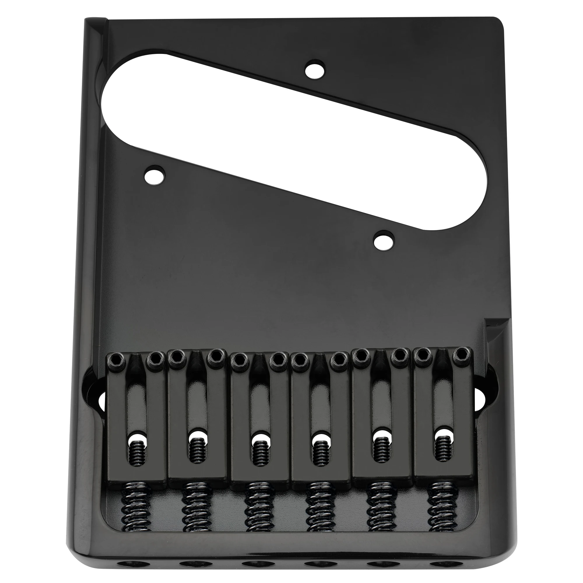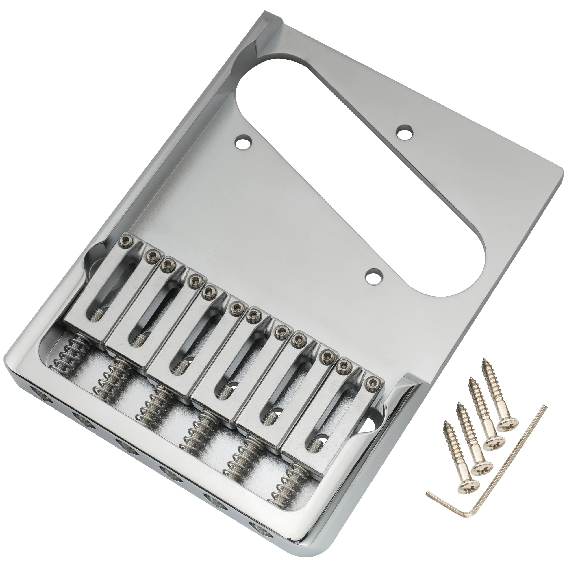 Upgrade your Tele-style electric guitar with this full solid brass heavy-duty asymmetric bridge featuring a modern six-saddle design for improved intonation and sustain. Measuring 54mm (10.8mm x 5mm) string spacing and equipped with four mounting screw holes spaced 64.8mm (21.6mm x 3), it offers durability and precise adjustment. The sleek, polished finish is available in chrome, black, and gold, adding a sophisticated touch to your instrument. Crafted entirely from metal, this high-quality bridge is ideal for string-through-body setup and includes all mounting accessories for easy installation, delivering enhanced sound quality and a modern aesthetic.