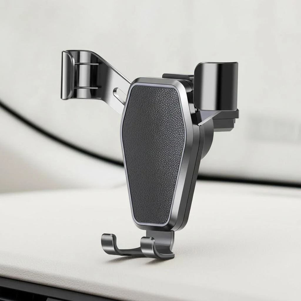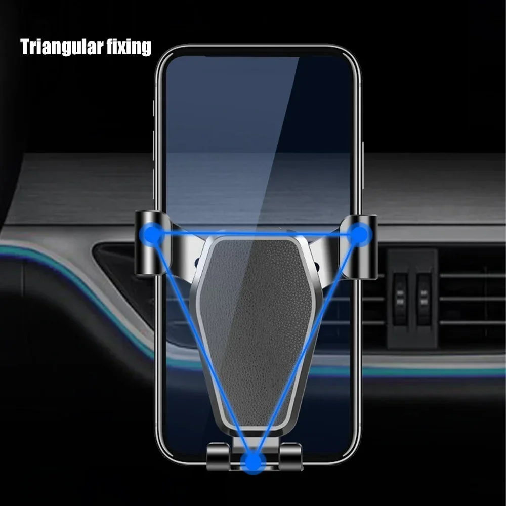 Experience secure and convenient hands-free phone use with this sleek black car air vent holder, crafted from durable ABS plastic. Measuring approximately 93mm x 85mm x 63.5mm, it fits devices from 4.6 to 7″, providing a snug fit thanks to its automatic gravity-lock mechanism and stable triangular design that prevents slipping on bumpy roads. The non-slip clip ensures a firm attachment to air vents, while the charging port hole allows for hassle-free charging during your drive. Its minimalist, modern aesthetic seamlessly blends into your vehicle’s interior, offering both practicality and style for everyday use.