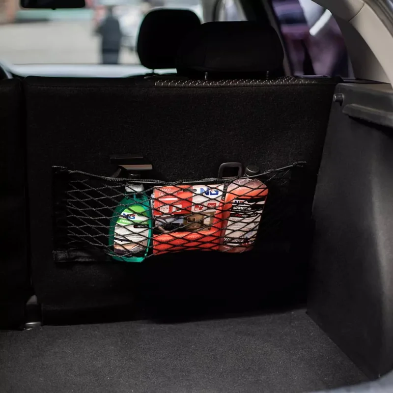 Enhance your vehicle’s interior organization with this durable black polyester mesh storage net, measuring 20 x 35 cm or 20 x 45 cm. Its fixed strap design ensures secure attachment to the rear trunk or seat back, providing flexible storage for small to medium items like bottles, gadgets, or tools. The fine, diamond-shaped mesh pattern offers a sleek, modern look while maintaining strength and flexibility. Reinforced fabric borders add durability, making installation easy and secure. Perfect for maintaining a tidy and accessible car interior, this practical organizer seamlessly blends functionality with a minimalist style, elevating your driving experience by keeping essentials neatly within reach.