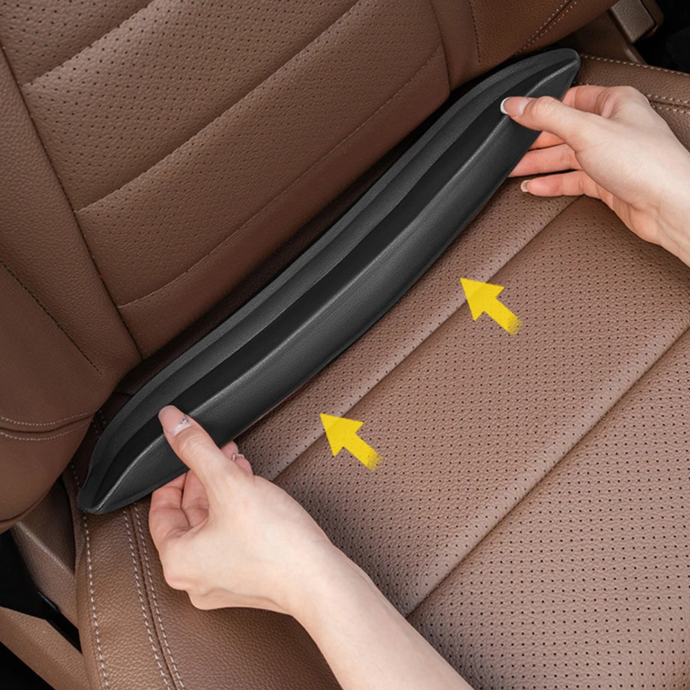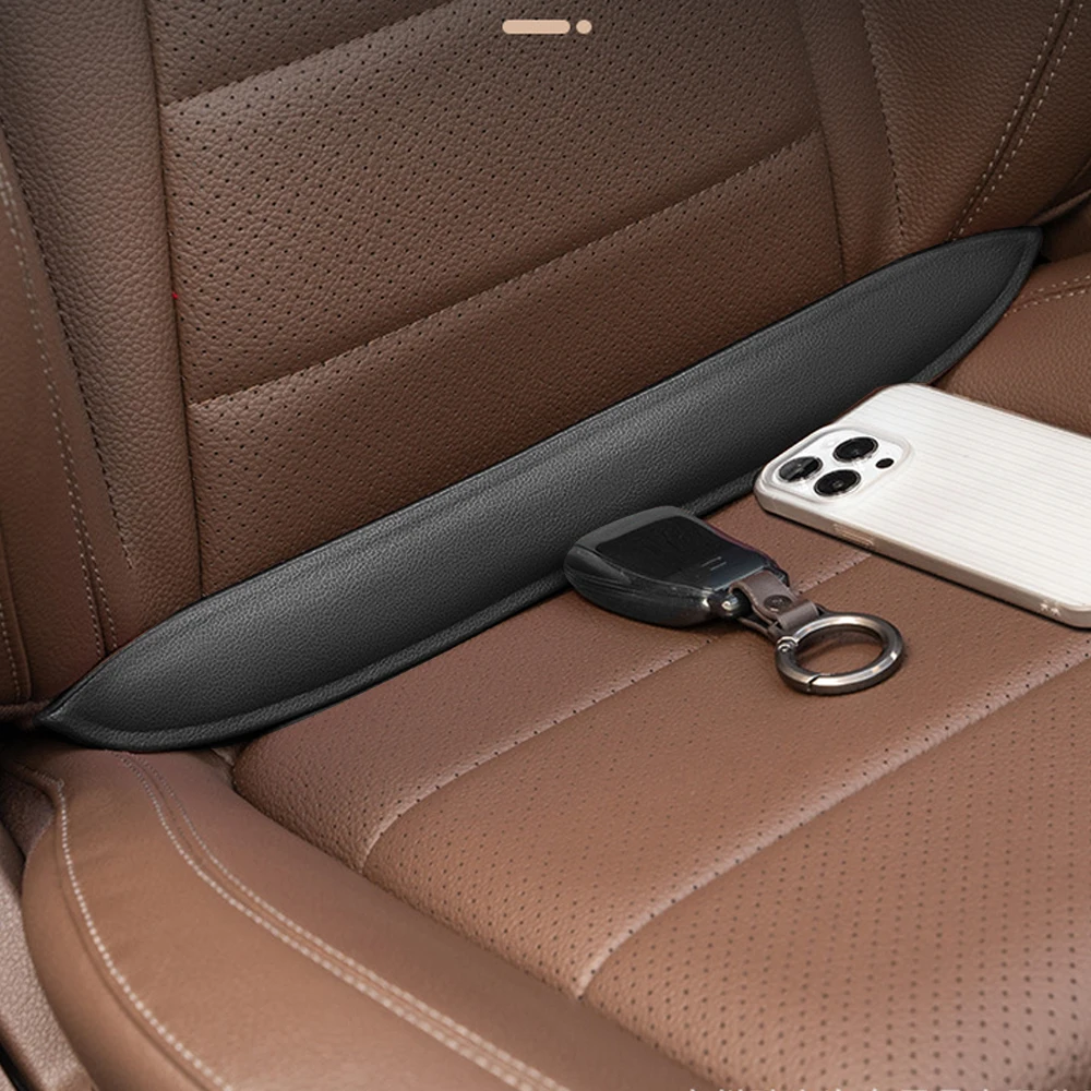 Imagine a clutter-free vehicle interior with this sleek black car seat gap filler seamlessly fitting into your car's design. Made from high-quality PU leather, it provides a durable, soft, and textured surface that complements your interior. Its precise 15.7-inch length and 1.57-inch width ensure an exact fit across most vehicle models, preventing dust, debris, and small objects from falling into hard-to-reach gaps. The leak-proof and dust-proof features add to your comfort and cleanliness. Simply insert it into the gap—no tools needed—and enjoy a neat, stylish, and functional upgrade to your car’s interior. This addition offers a sophisticated solution to common clutter problems, making your driving experience more enjoyable and organized.