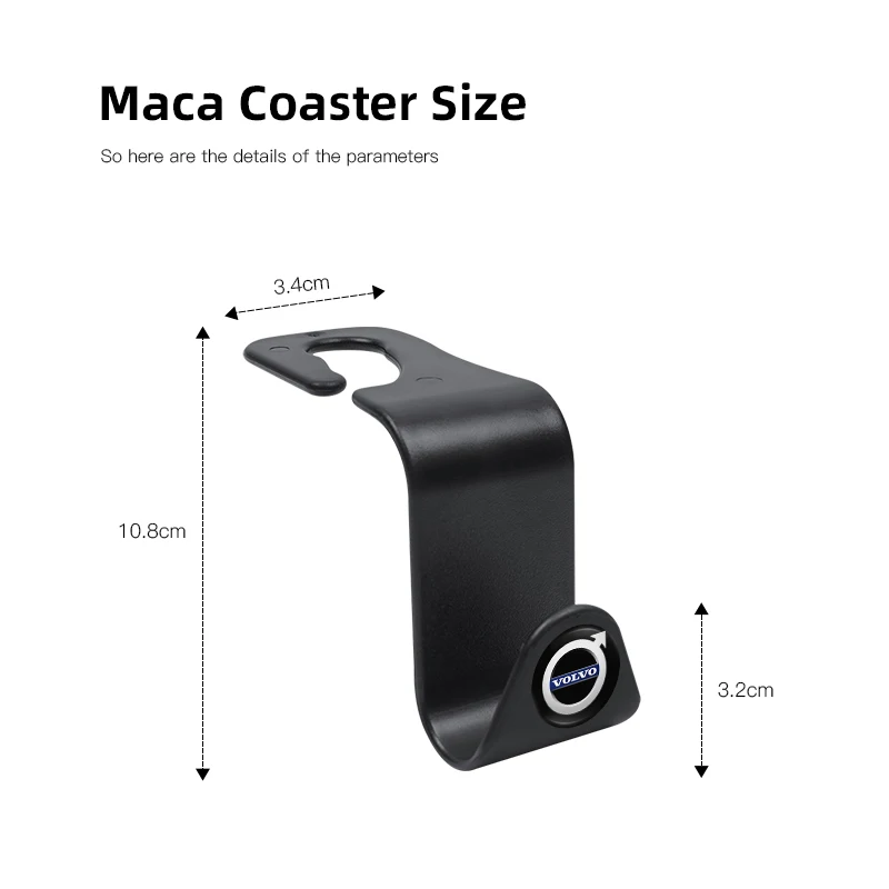 - This set includes either 2 or 4 black ABS resin hooks measuring 6.5 x 6.5 x 3.5 cm, designed for a universal fit in various vehicle models including SUVs like XC90 and V90.