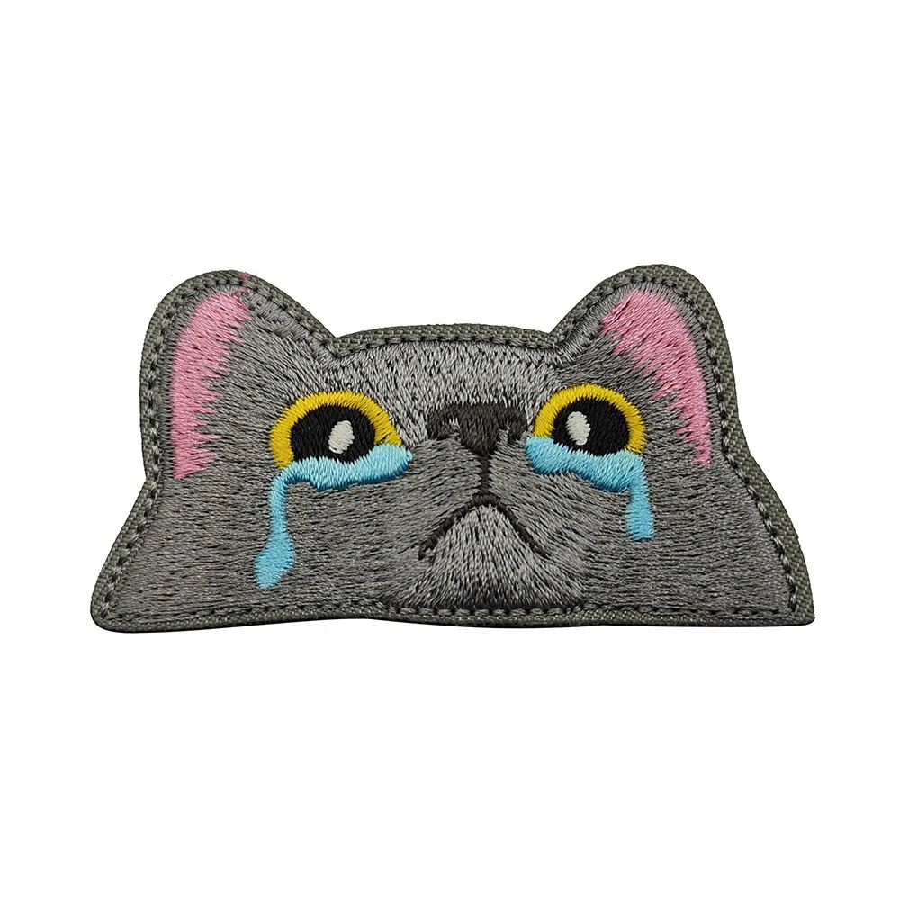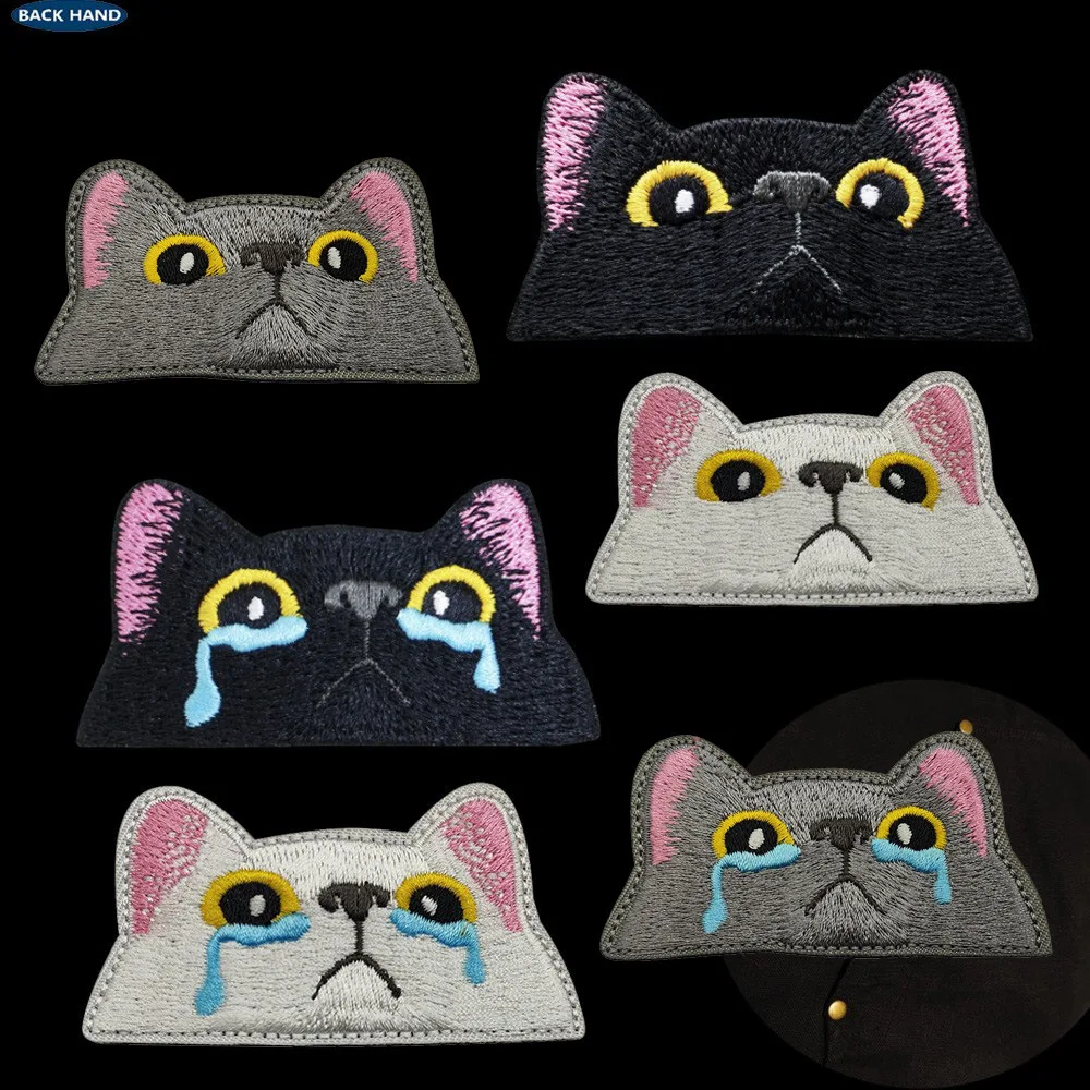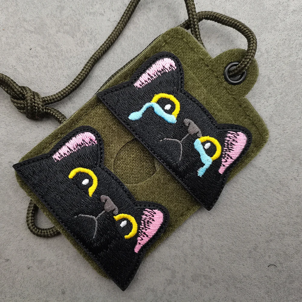 A delightful addition to your collection, this cute black cat cloth sticker showcases a beautifully embroidered cat face, outlined in light gray with charming pink ears. The expressive yellow eyes and blue teardrop motifs add a unique touch to your jackets, backpacks, or DIY projects. Made from durable nylon and polyester, this patch is not only visually appealing but also practical for outdoor use. Its eco-friendly composition and easy application via hook and loop backing make it a versatile accessory. Sew it on for extra durability, and enjoy enhancing your style with this whimsical design that speaks to the cat lover in you!