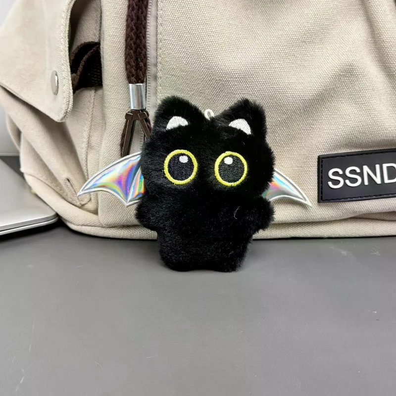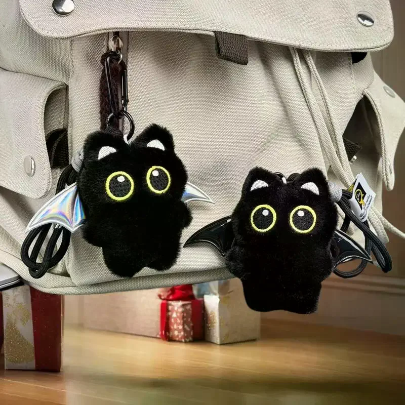 Elevate your accessories with this adorable 10 cm plush keychain featuring a black cat design with a sleek silver wing. Crafted from soft plush material filled with PP cotton, it offers a charming and whimsical look perfect for decorating your bag, keys, or camera. Available in two aesthetic variations (A1 and A2), each keychain comes with a lightweight car key ring attachment, making it easy to add a touch of personality to your everyday essentials. Designed for ages 14 and above, this collectible piece combines playful elegance with a subtle hint of mystery, elevating your style while securely holding your keys or accessories.