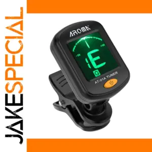 Imagine effortlessly tuning your musical instrument with this high-precision, compact clip-on tuner. Designed for guitar, bass, ukulele, and violin, it features a rotatable LCD display that adjusts for optimal viewing from any angle. Its minimalistic black finish combines modern style with functionality, making it suitable for both practice and performance. The bright orange power button adds a bold touch, ensuring easy access. The large, easy-to-read LCD screen displays stylized numbers with a semi-circular, color-coded gauge—green for in-tune, white for out-of-tune—visual cues that help you tune precisely and quickly. Light, portable, and reliable, this tuner becomes your essential partner when perfecting your sound on the go or in the studio.
