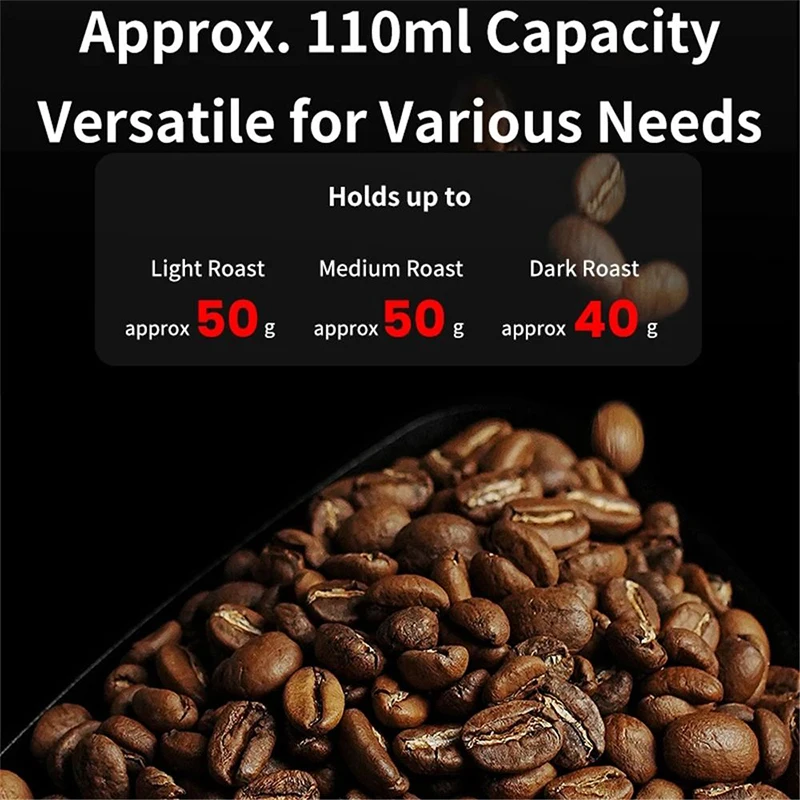 - The kit includes a 110ml aluminum alloy coffee bean dosing cup with a minimalist matte black finish for durability and style.