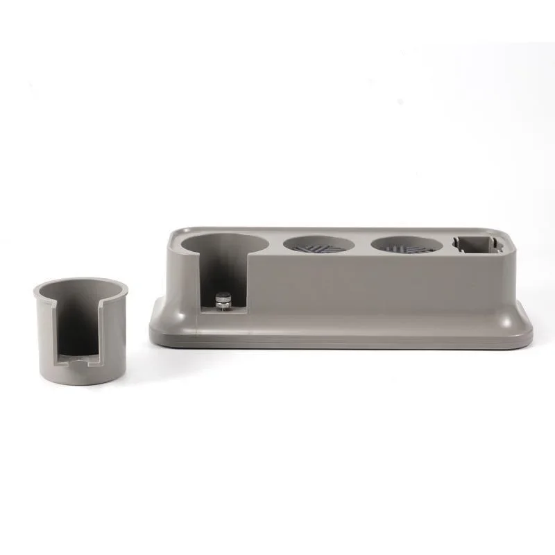 Experience the perfect organization companion to elevate your espresso routine. Crafted from durable ABS and silicone, this modern black station offers a minimalist, professional look. Its rectangular base with an elevated, sloped profile ensures stability and easy access. Designed to fit 51mm, 54mm, and 58mm portafilers, its height-adjustable feature allows customization for various setups, providing flexibility whether you’re a home barista or a professional. The designated slots comfortably hold your portafilter and accessories, reducing clutter on your counter or workspace. With its smooth finish and sturdy construction, this tamper station enhances efficiency and tidiness. Its timeless black color seamlessly integrates into any coffee environment, making your brewing process more enjoyable and organized.