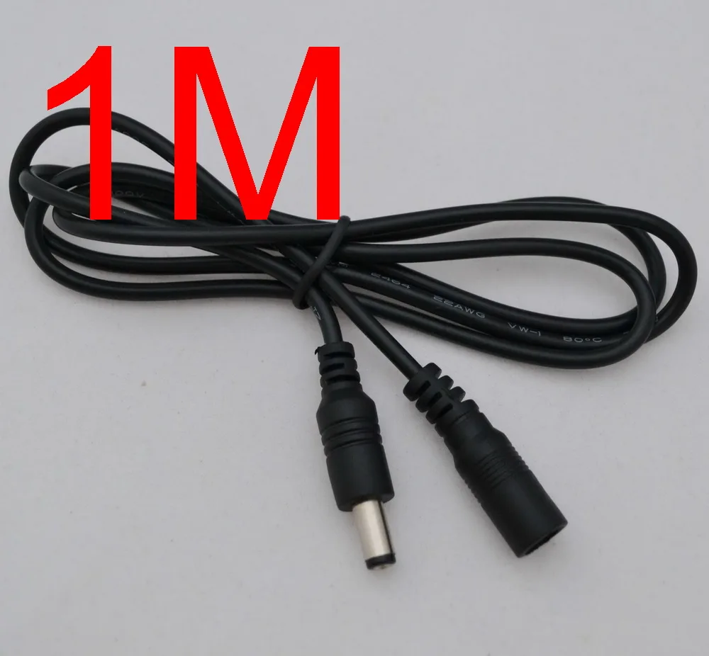 This durable black DC extension cable is available in 1m, 3m, or 5m lengths, featuring a copper wire core for reliable conductivity. It has a female connector with a 5.5mm outer diameter and a male connector with a 2.1mm inner diameter, compatible with 12V power sources. Supporting current ratings of 1A to 5A and operating within -50°C to 65°C (-58°F to 149°F), it is ideal for powering LED strips, CCTV cameras, monitors, printers, sensors, external hard drives, and audio equipment. The cable offers surge and overload protection, is non-grounding, and CE certified for safe, versatile use.