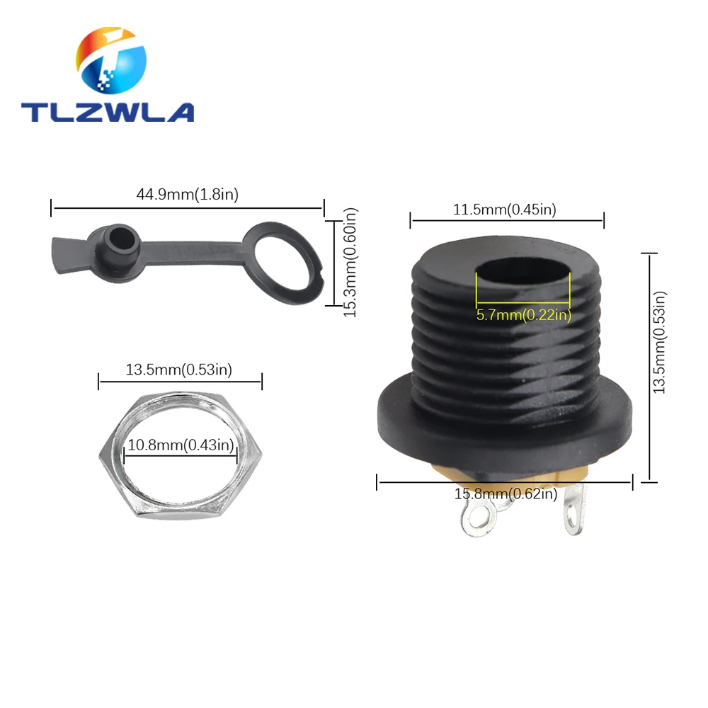 - Includes 10 black cylindrical DC power sockets with external threading and an 11mm opening for secure and stable mounting in your projects.