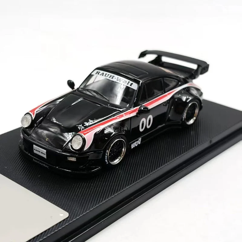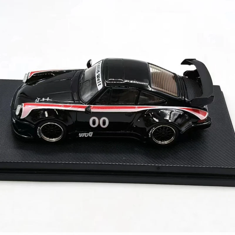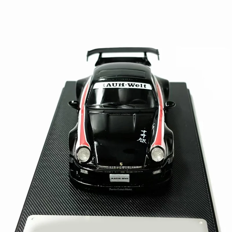 This exquisite diecast alloy model car in 1:64 scale measures approximately 7-10 cm in length and features a sleek black finish accented by striking red and white racing stripes. Its aerodynamic design includes detailed elements such as a prominent rear spoiler, alloy-style metallic rims with intricate tread patterns, subtle door outlines, and side mirrors, capturing a high-performance, racing-inspired aesthetic. Crafted for display, collection, or decoration, this fragile yet meticulously detailed model is made from durable alloy material. Please handle with care to preserve its pristine condition. An ideal choice for enthusiasts seeking a refined showcase piece.
