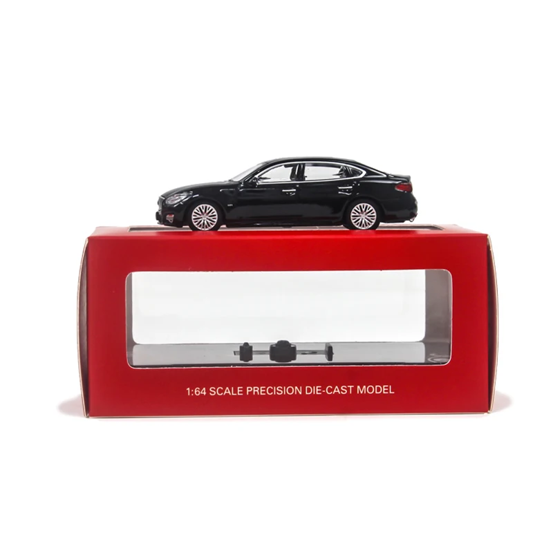 - Dimensions at scale 1:64 measure approximately the size of a real car, fitted with transparent windows, realistic door handles, side trims, and alloy wheels with silver rims for authentic detailing.
