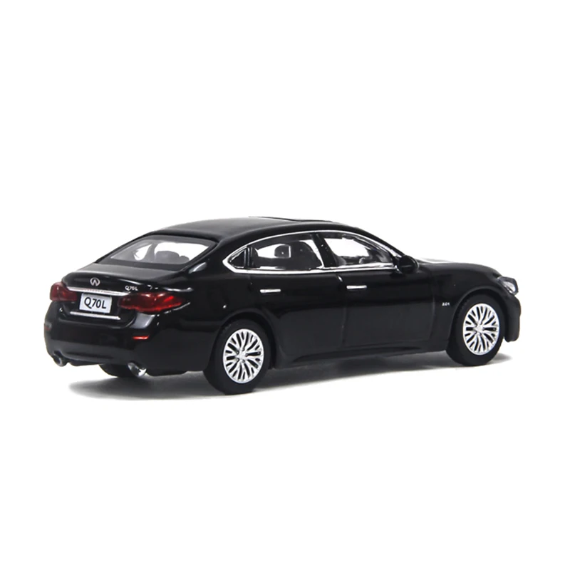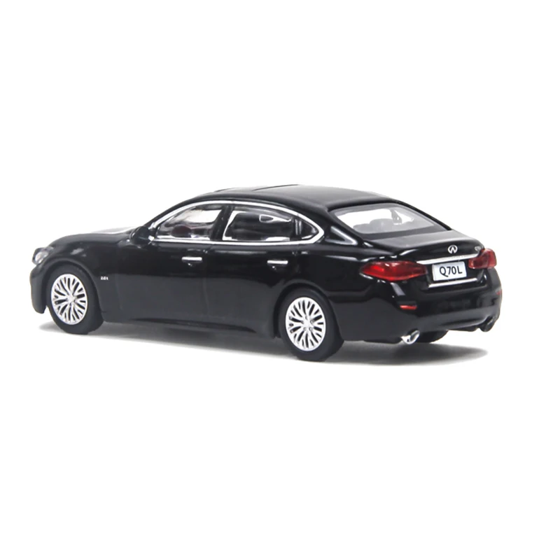 - Replicates the 2017 Infiniti Q70L, showcasing a sleek black glossy exterior finish that emphasizes its modern luxury style. Perfect for display or collector showcases.