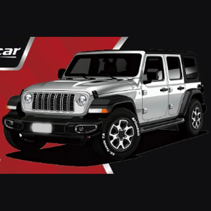 - Features a distinctive vertical-slatted front grille, round headlights, and detailed side elements including door handles and side steps.