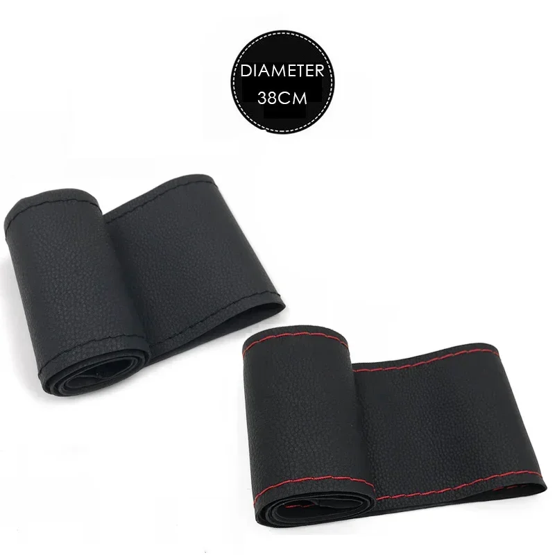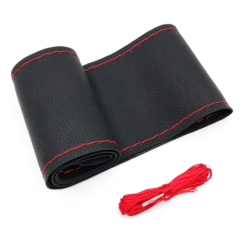 Experience the perfect blend of style and comfort with this black DIY steering wheel cover. Crafted from soft ultrafine fiber leather, it offers a smooth, textured surface that enhances your driving experience. The contrasting red stitching along the braided edges adds a sporty, eye-catching touch, making your vehicle’s interior stand out. Designed to be flexible and easy to install, you can quickly customize your steering wheel without tools. This universal cover fits steering wheels with an outer diameter of 37 to 38 centimeters, ensuring compatibility with most vehicles. Its durable, season-proof design promises a long-lasting upgrade to your car’s interior aesthetics. Enjoy a sleek, modern look combined with functional practicality every time you drive.