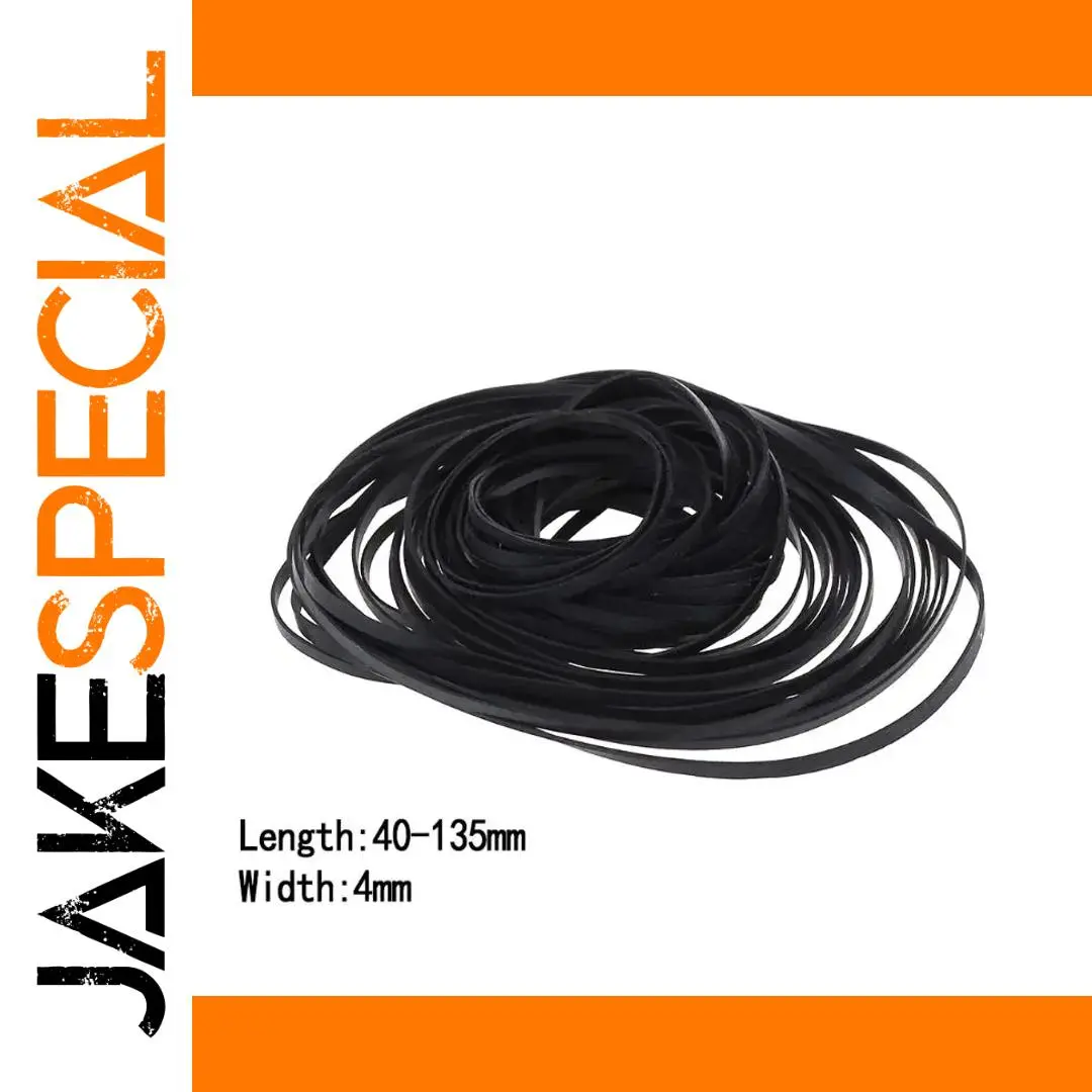 This set of 50 black flat rubber drive belts measures approximately 4mm in width with a folded length ranging from 40mm to 135mm (1.5 to 5.3″). Crafted from durable, firm rubber, these belts are designed to absorb vibrations without deformation, ensuring reliable traction and long-lasting performance. Ideal for use in cassette tape machines, CD/DVD recorders, and Walkmans, they provide a high level of wear resistance. Their sleek, smooth surface and minimalist rectangular shape make them a practical replacement part, offering technical precision and dependable operation for audio and video equipment enthusiasts and professionals alike.