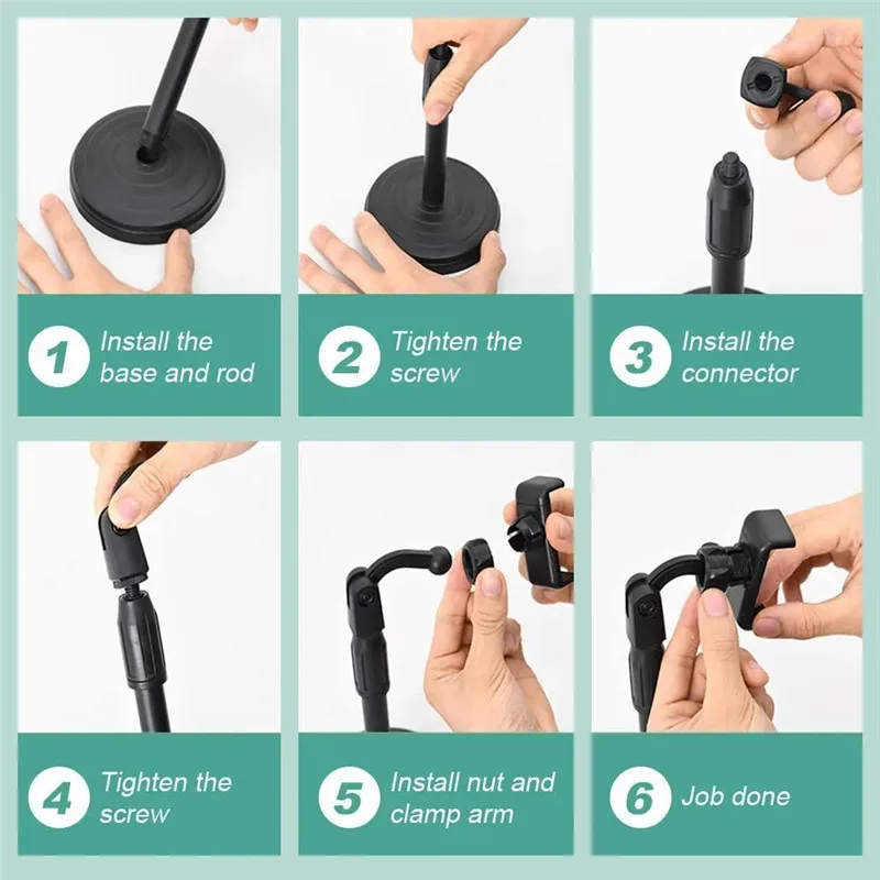 This sleek black desktop phone holder features an adjustable height, dual-location design for simultaneous use of two phones, and compatibility with various mobile sizes. Made from durable plastic, it offers stable support and flexible viewing angles in portrait or landscape mode, ideal for live streaming, photography, studying, and working. Its easy installation and versatile functionality make it a practical choice for content creators and professionals alike, providing a secure grip with soft padding to prevent scratches while allowing quick adjustments for optimal viewing. Experience a reliable, modern design that seamlessly adapts to your needs for a more efficient and organized workspace.