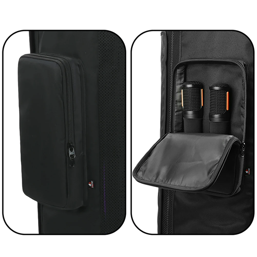 - Features a reinforced, vertical zippered pocket on the side, ideal for storing microphones, cables, or small audio accessories securely.