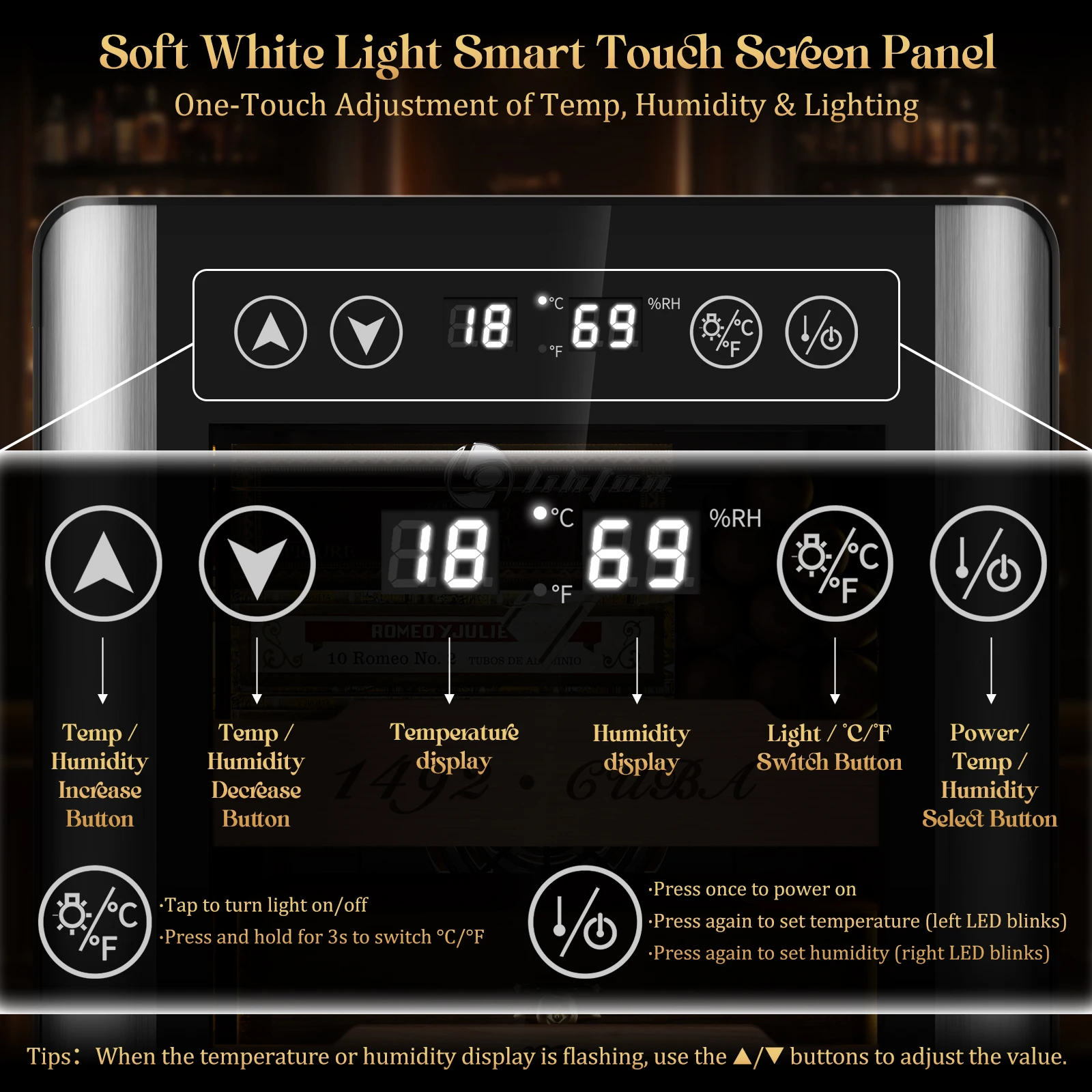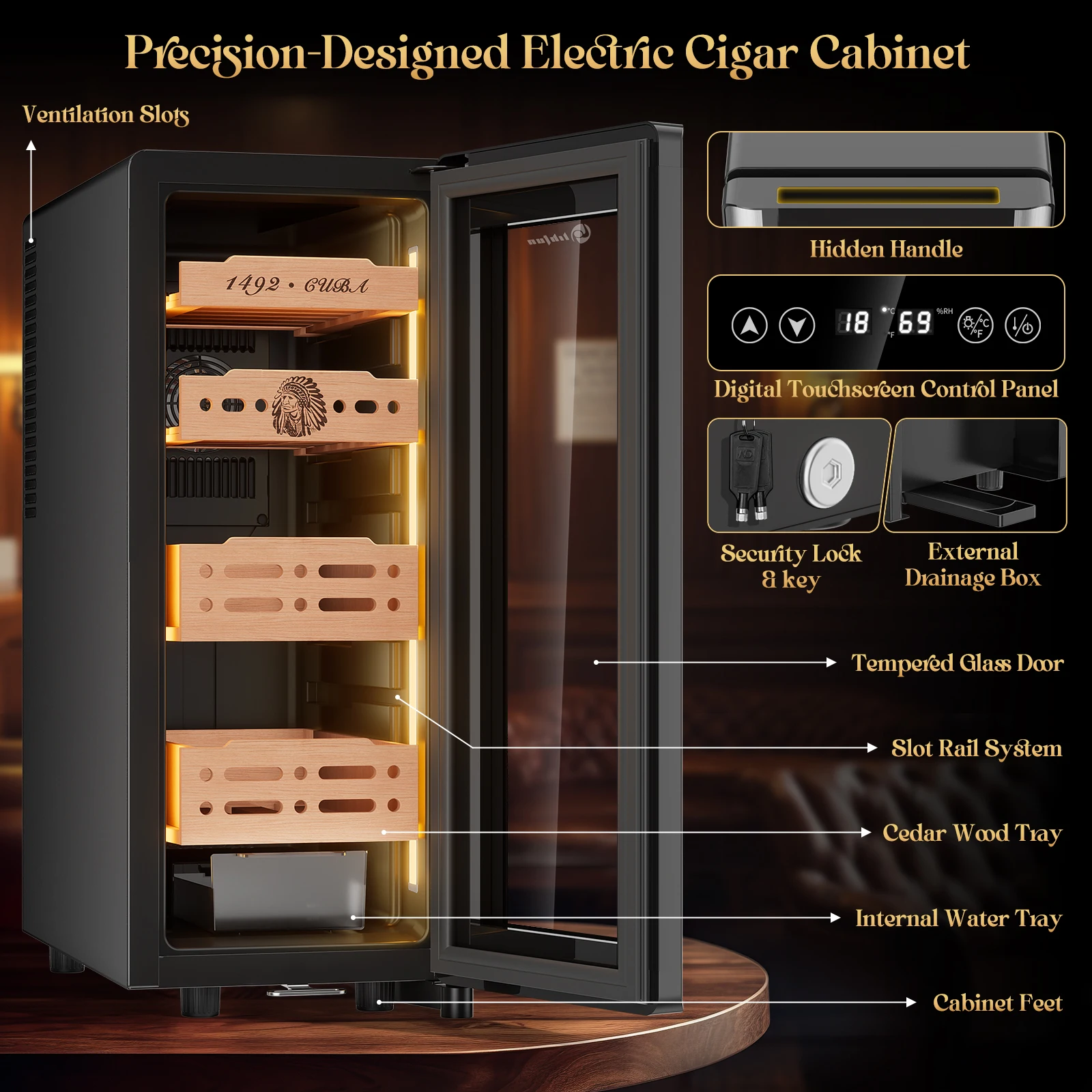 - The UV-protected, heat-insulating glass door displays your collection clearly while protecting cigars from harmful UV rays and temperature fluctuations, maintaining optimal humidity levels.