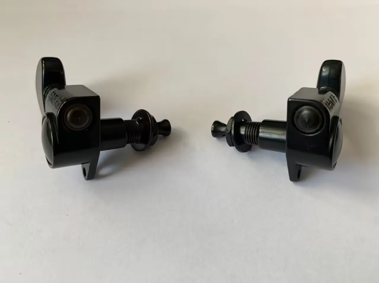 Upgrade your guitar with this set of six high-quality tuning pegs, including three right-handed and three left-handed strings, all finished in sleek black for a modern and professional look. Designed to ensure precise tuning and reliable performance, these tuning pegs feature a durable rectangular gear housing with softly rounded edges and smooth, glossy, disc-shaped tuning buttons that reflect light beautifully. Their uniform, minimalist design complements any guitar style, providing both aesthetic appeal and functional excellence. Perfect for guitar customization or repair projects, these tuning pegs are an essential upgrade for musicians seeking both performance and style, and they are compatible with a wide range of electric guitars.
