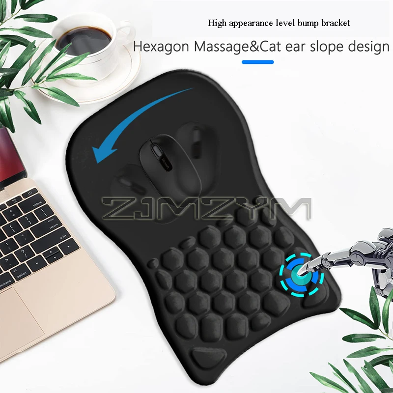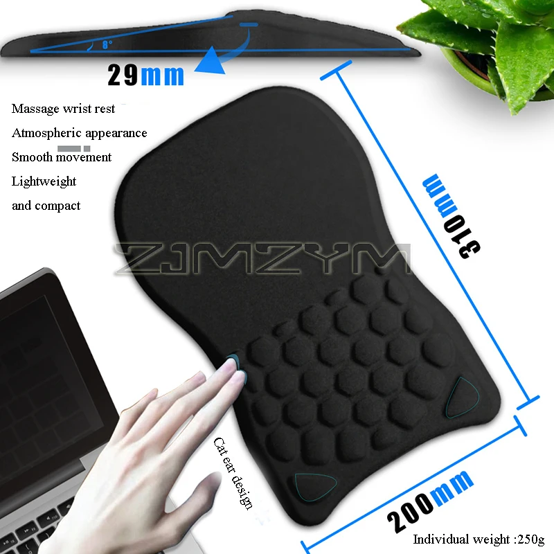 - Contoured memory foam wrist rest with honeycomb pattern designed to provide gentle massage, reduce tension, and enhance ergonomic comfort during extended use.