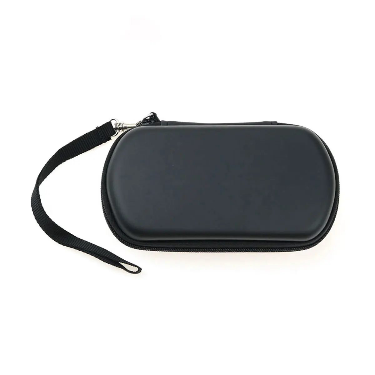 Protect your Sony PSP Go with this sleek black EVA storage and carrying case, featuring a durable semi-rigid design with a smooth matte finish. The two-part oval-shaped case offers a streamlined, minimalist look and is secured with a zipper closure for easy access. An attached adjustable woven fabric strap with a metal clasp enhances portability, making it ideal for travel. Designed specifically for the PSP Go, this protective cover ensures a snug fit to prevent damage and keep your device secure on the go. Experience a blend of style, protection, and convenience with this sophisticated and functional storage solution.