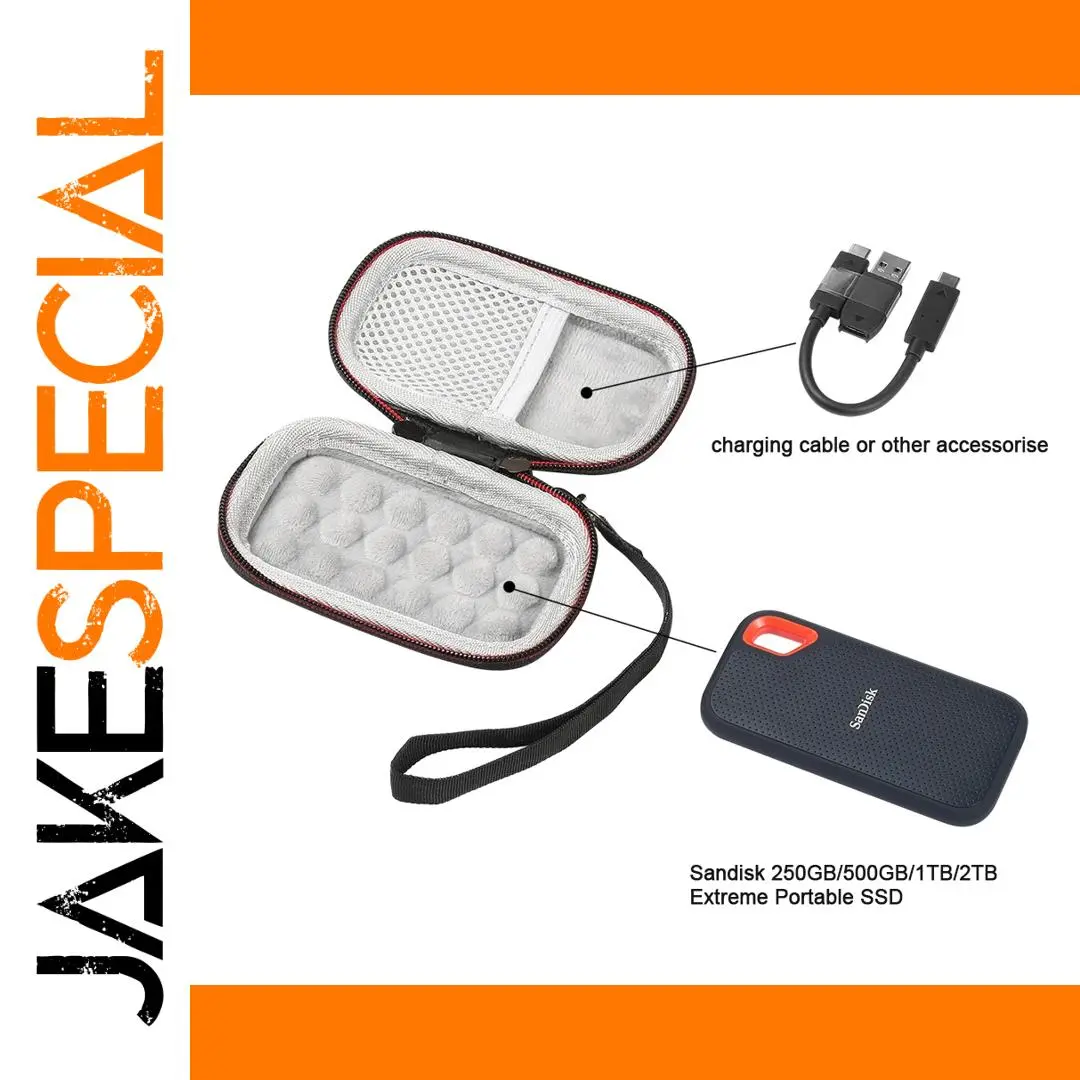 Protect your SanDisk Extreme Portable SSD (250GB, 500GB, 1TB, or 2TB SDSSDE60) with this sleek black hard EVA case, designed for ultimate durability and portability. Measuring 120mm x 70mm x 30mm and weighing only 52 grams, it offers semi-waterproof, shockproof, and impact-resistant protection against splashes and bumps. The sturdy 360-degree zipper ensures easy access, while the integrated handle makes carrying effortless. Its compact design fits perfectly in backpacks or luggage, securely safeguarding your SSD and accessories during travel or daily use. Crafted for modern professionals, this case blends rugged practicality with minimalist style, keeping your valuable data safe wherever you go.