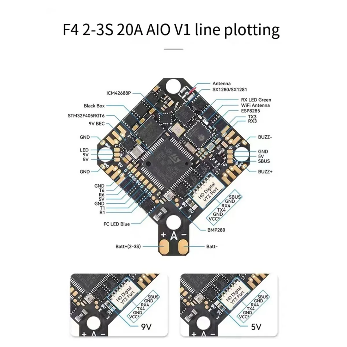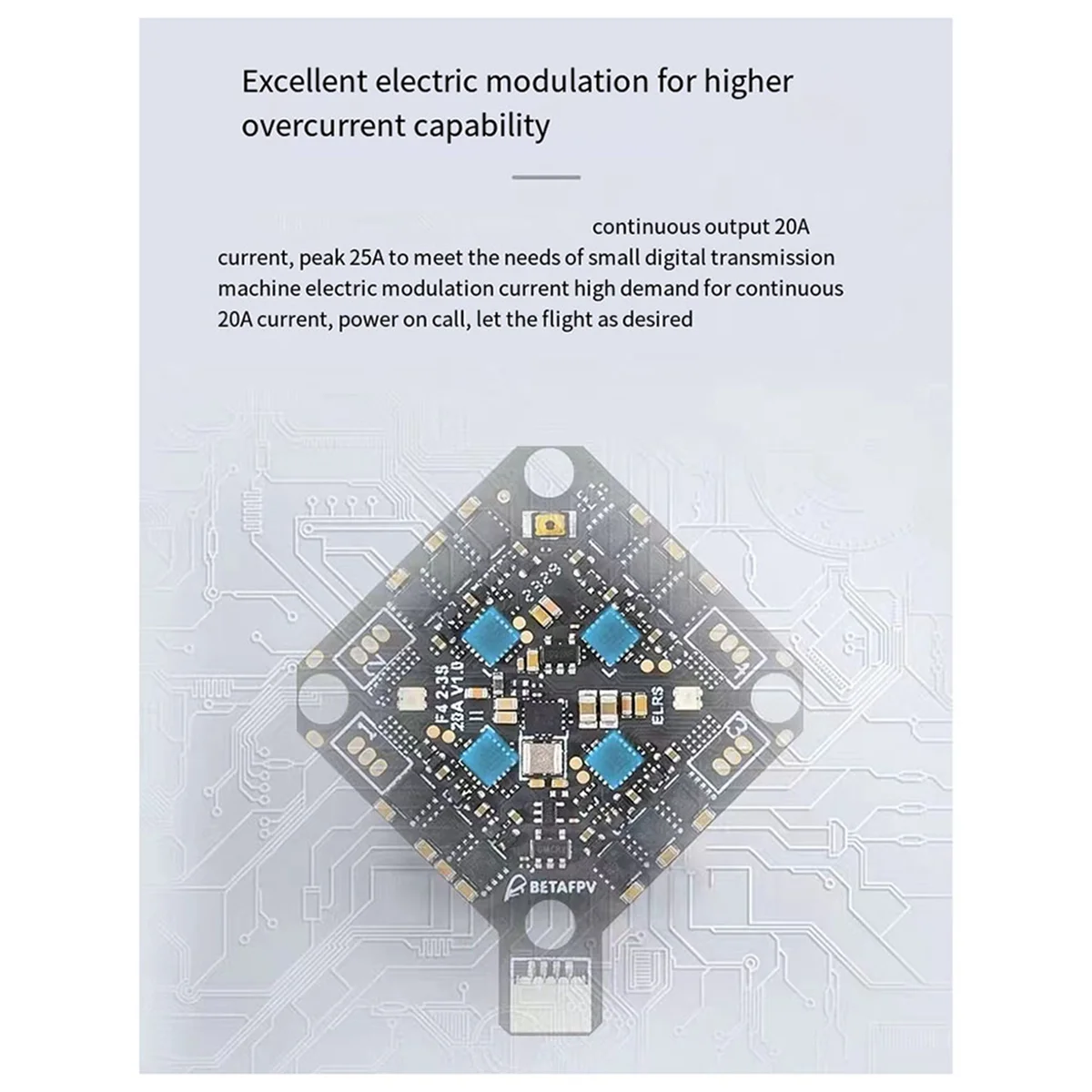 - Supports 2-3S LiPo batteries with a maximum current of 20A, ensuring reliable power delivery for swift, responsive maneuvers.