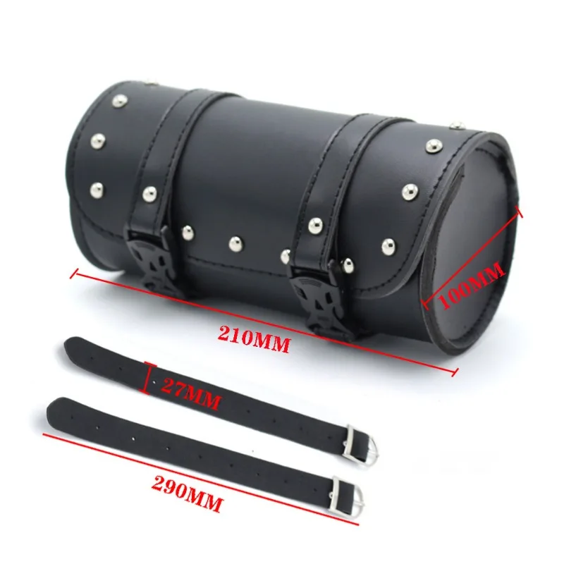Imagine enhancing your motorcycle or e-bike with this sleek, cylindrical front fork bag, crafted from premium faux leather in a deep black hue. Its smooth matte finish offers a modern, minimalist aesthetic that complements any riding style. Measuring approximately 21cm in length and 10cm in diameter, this bag provides ample space to store essentials such as keys, mobile phones, water bottles, or small personal items. Its design ensures a secure fit, thanks to two durable metal loops that attach easily to handlebars, behind the seat, or along the side of your bike. Perfect for long-distance riding, it balances style with practicality, making your cycling experience more convenient and enjoyable.