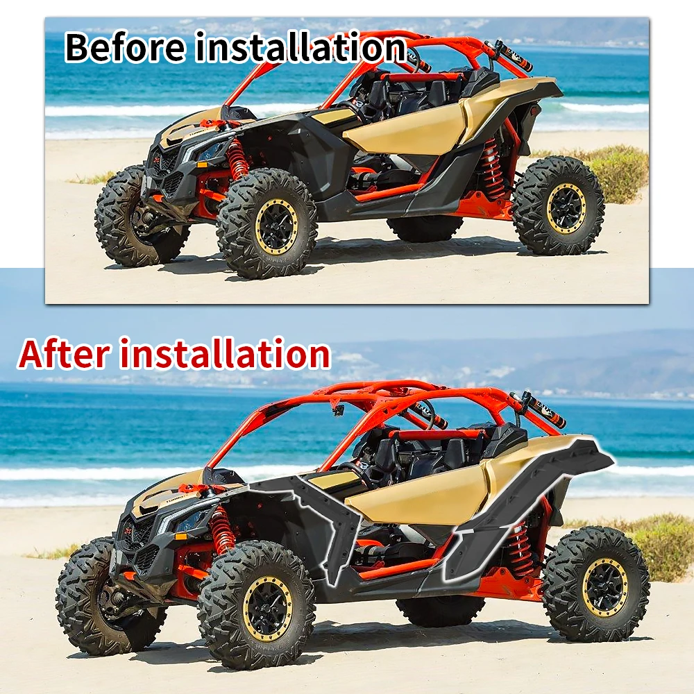 Imagine your vehicle with a bold, new look and added protection that enhances both performance and style. As you install these black polypropylene fender flares, you'll immediately notice the improved coverage and sleek appearance. Perfect for extreme off-road conditions, this accessory is a must-have for serious enthusiasts. Don't wait—equip your Maverick X3 with these high-quality flares now and enjoy every rugged expedition with added confidence and style. Get ready to stand out on any trail and enjoy the ultimate off-road experience.