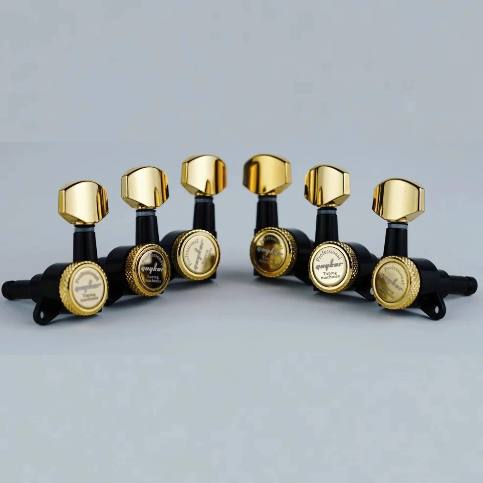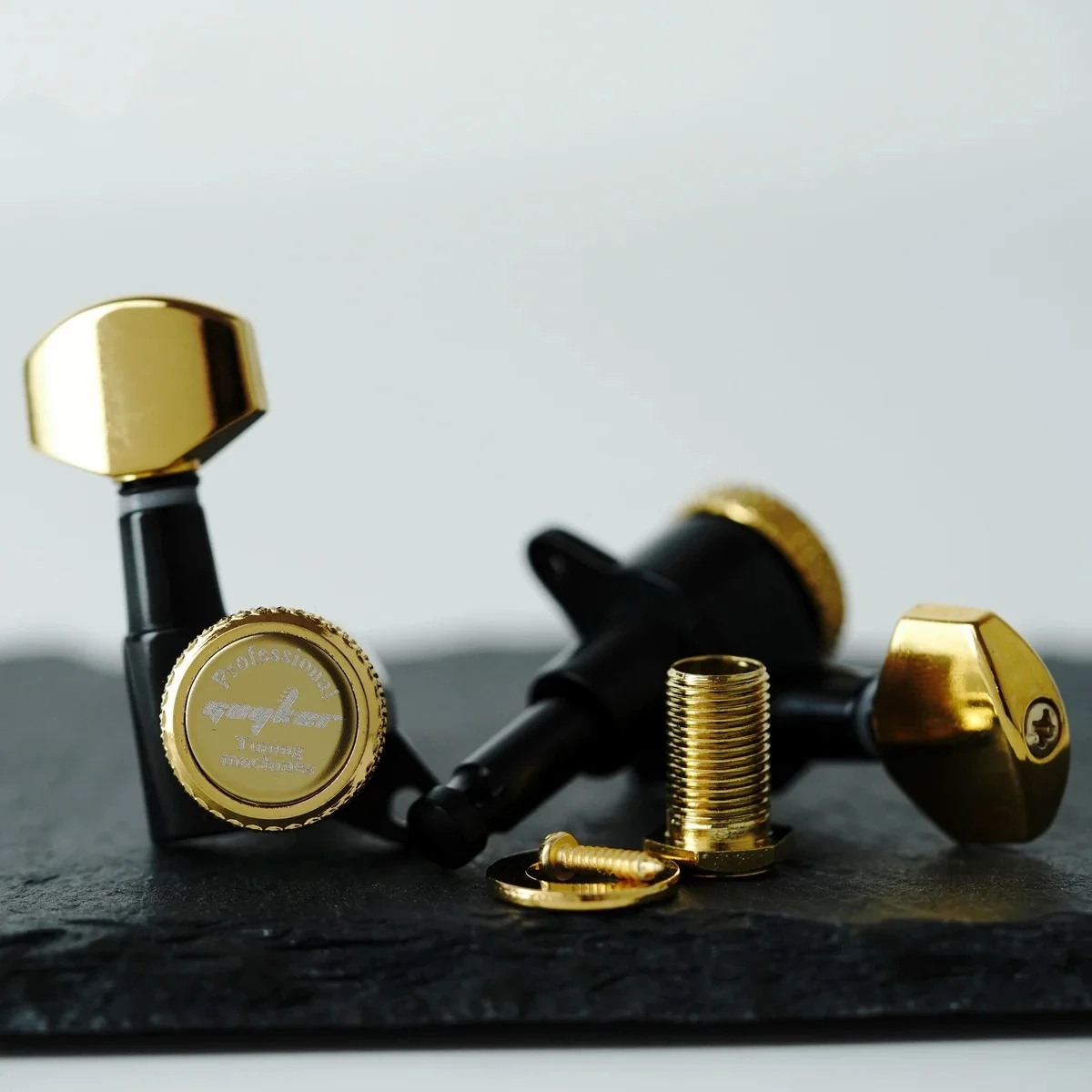 - Designed in a refined black and gold finish, these tuners add a luxurious touch to any guitar, perfect for high-end customizations or professional setups.