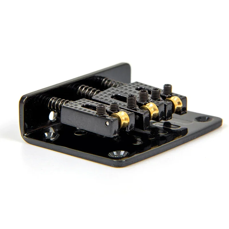 Experience the perfect balance of functionality and sleek design with this high-quality black guitar bridge. Crafted from durable zinc alloy and iron, it offers exceptional stability and longevity. Its compact, rectangular shape and matte black finish provide a modern, industrial aesthetic that complements various guitar styles. The roller saddle enhances string movement, promoting smooth tuning adjustments and maintaining tone clarity. Designed for 3-string and 4-string box guitars, it features precise dimensions: 50x42mm for 3-string models and 60×38.5mm for 4-string models, with a consistent 10.5mm string spacing. Easy to install with included screws and wrench, this bridge ensures a firm fit and excellent performance. Elevate your guitar’s sound and style with this sleek component.