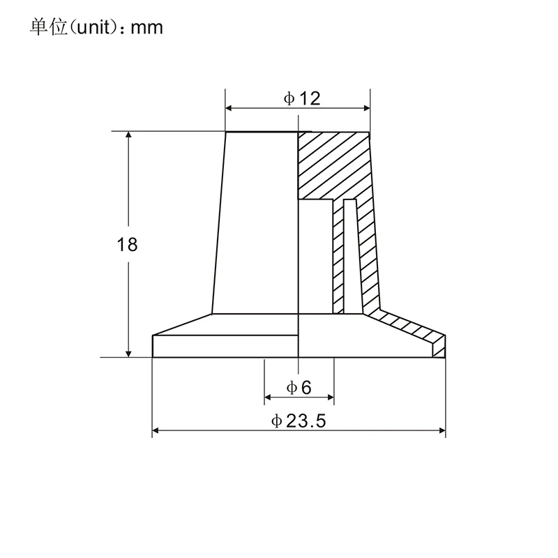 - These knobs feature a 12mm diameter top with a 23.5mm bottom diameter, and stand 18mm tall for a compact yet effective control solution. They fit standard 6mm split shafts.
