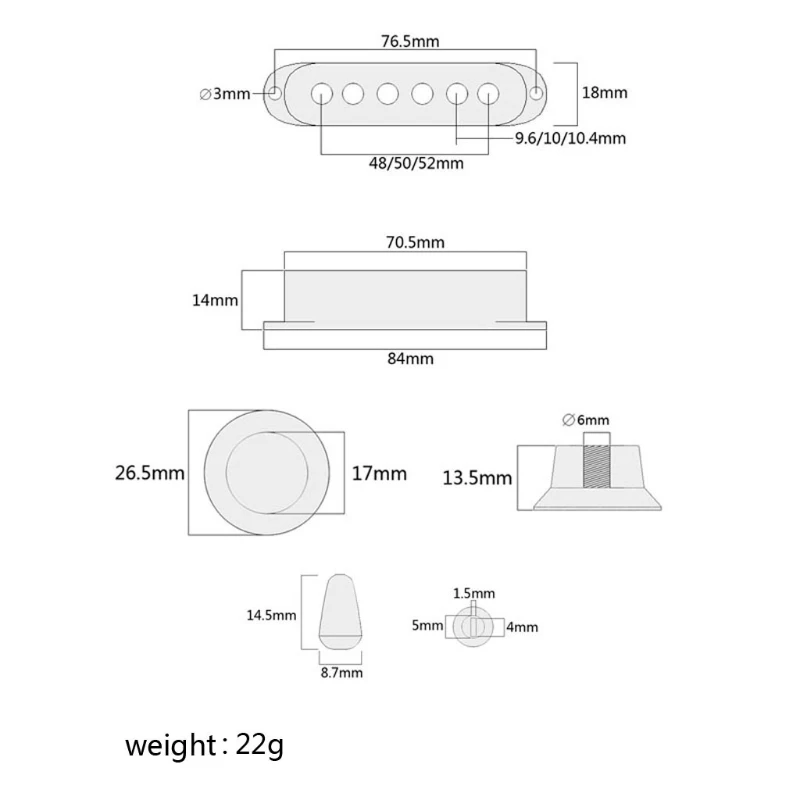 - Offers three pickup covers with 48mm, 50mm, and 52mm hole spacing, fitting standard SSS electric guitars for precise pickup mounting.
