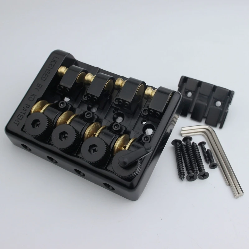 Enhance your headless travel bass guitar with this sleek, black metal four-string bridge, model WB1004. Designed for precision and durability, it features a minimalist rectangular base plate with multiple mounting holes, four individual saddles with brass-colored fine-tuning screws, and a streamlined modern aesthetic. Perfect for traveling musicians, this high-quality bridge offers reliable performance, easy installation with included screws and Allen wrench, and a professional matte black finish that complements any bass setup. Crafted for compatibility with headless basses, it ensures precise intonation and stable string positioning, allowing you to focus on your playing wherever your music takes you.