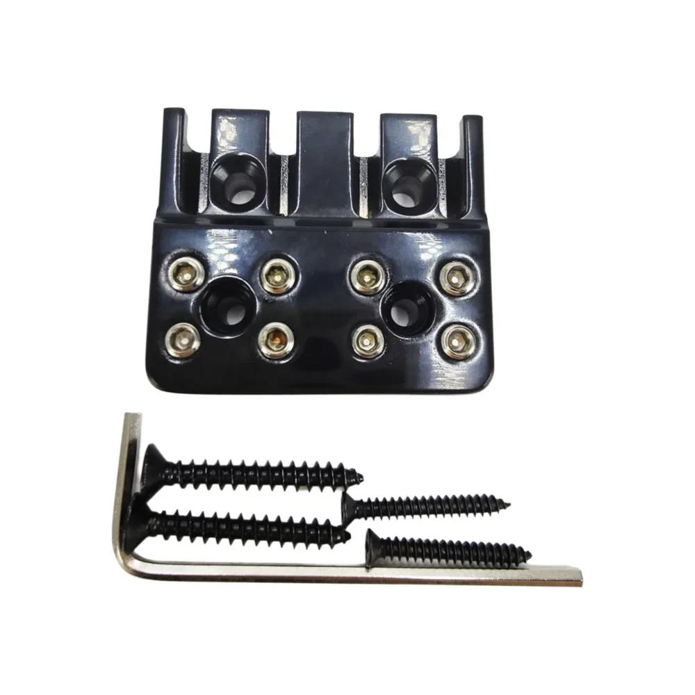 Transform your bass guitar with this stylish, minimalist black headless bass bridge designed for precision and durability. Its rectangular metal body with smooth, rounded edges offers a clean modern look that seamlessly complements any bass setup. The matte black finish adds a sophisticated touch while reducing glare, making it ideal for stage performances. Featuring four string slots evenly spaced and silver-colored metal accents, this bridge combines functionality with a sleek aesthetic. Built for stability and long-term use, it’s the perfect upgrade for your instrument, ensuring reliable performance whether you're in the studio or on stage. Easy to install, it enhances your bass’s tone and appearance effortlessly.