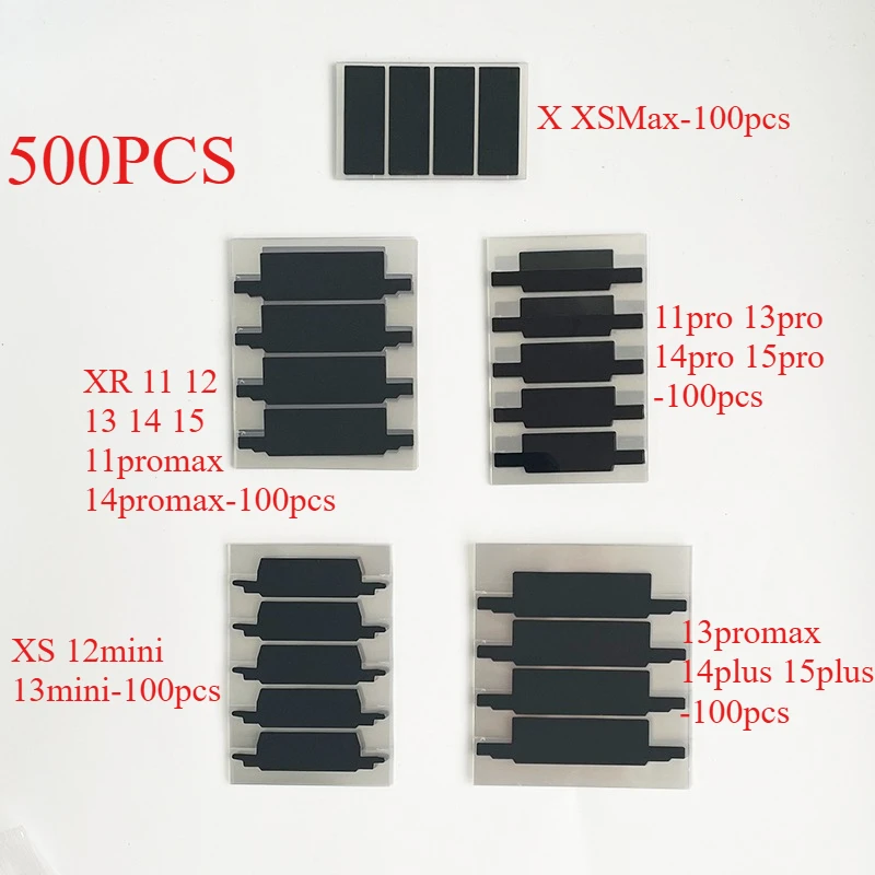 Imagine smoothly restoring your iPhone with confidence using this sleek, matte black insulation tape. Designed for precise application during battery repairs, it ensures your device remains protected from short circuits. The tape’s clean, rectangular shape conforms perfectly to various iPhone models, including X, XS, XR, 11, 12, 13, 14, and 15 series—covering Pro, Plus, and Mini variants. Its flexible, smooth texture makes installation effortless, while its discreet black finish guarantees a sleek, professional look. Whether you’re repairing or maintaining, this set of 100 protective tapes offers both reliability and ease of use, helping you achieve high-quality results easily, efficiently, and without worry about chemical concerns.