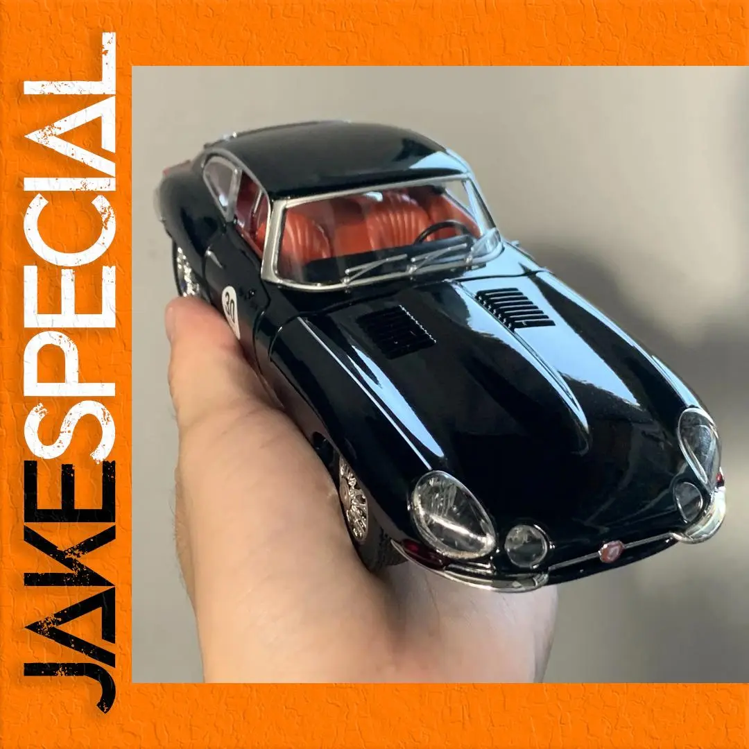 - This 1:24 scale diecast Jaguar E-Type is crafted from high-quality metal, ensuring durability and a premium feel for collectors and automotive enthusiasts alike. It boasts a glossy black finish that reflects light beautifully.