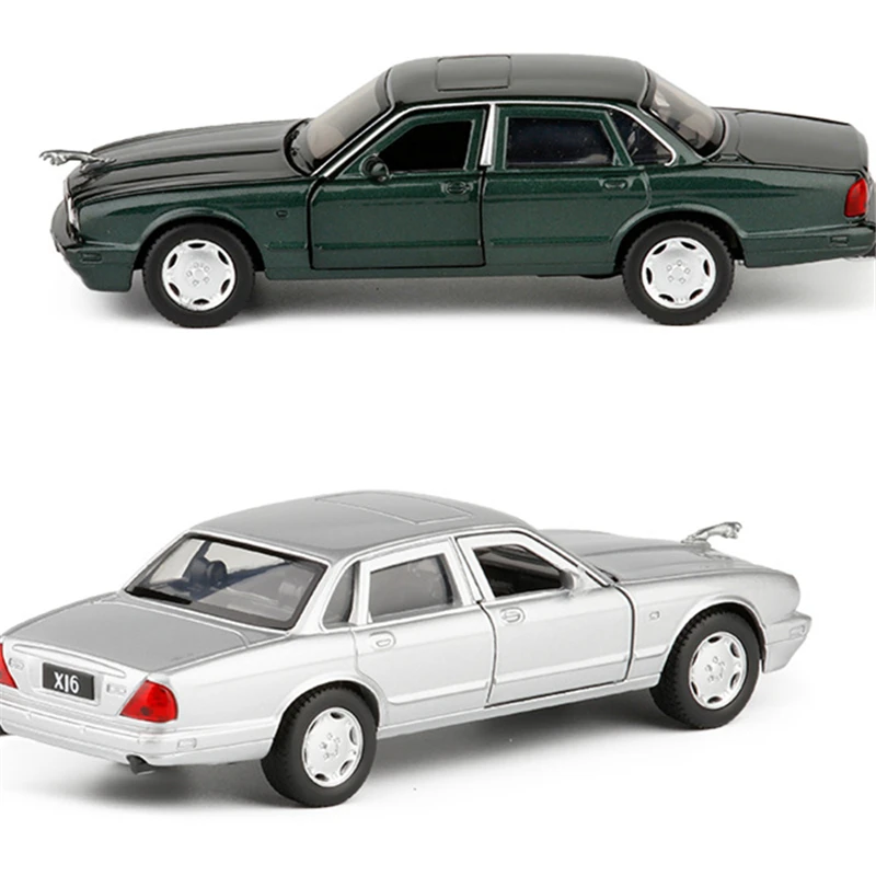 Enhance your collection with this highly detailed 1:36 scale diecast metal model of the classic Jaguar XJ6. Crafted from alloy and plastic, this non-electric model features a sleek black exterior with a glossy finish, chrome accents, and authentic proportions that capture the luxury of the original vehicle. Openable doors, trunk, and hood reveal intricate interior and engine details, while the pull-back mechanism provides smooth movement. Available in multiple colors including blue, green, red, and silvery, it is a perfect display piece for enthusiasts aged 4 and above, embodying a high level of realism and vintage charm for collectors and fans of classic automobiles.