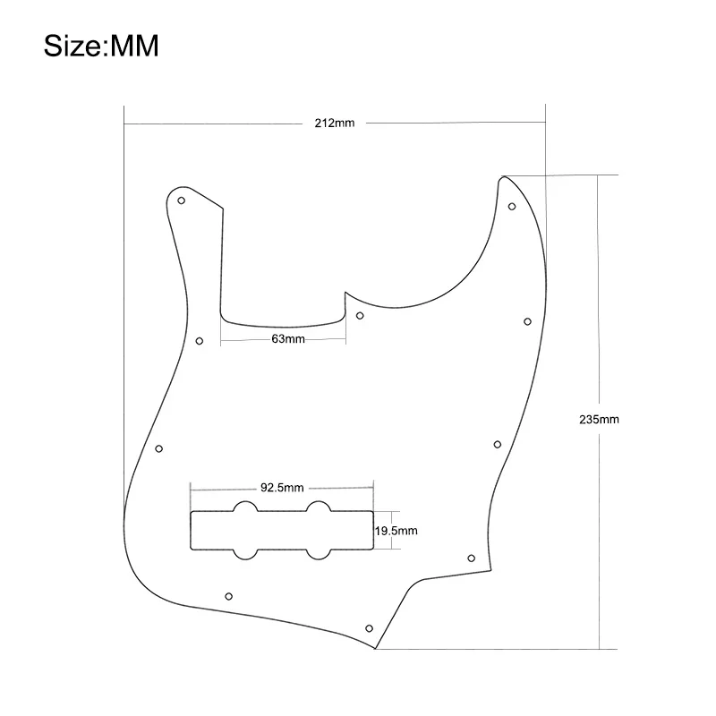 Enhance your JB style bass guitar with these 10 high-quality, anti-scratch black 3-ply PVC pickguards, model MU2330-2. Each pickguard features an asymmetrical, irregular shape with smooth, rounded edges, 10 side screw holes for easy mounting, and a rectangular cutout for functional access. Designed specifically for JB bass models, these durable pickguards provide a sleek, minimalist look while protecting your instrument from scratches. Easy to install, they are perfect for customizing or restoring your bass guitar, offering both style and protection in a professional, polished finish suitable for adult collectors and enthusiasts.
