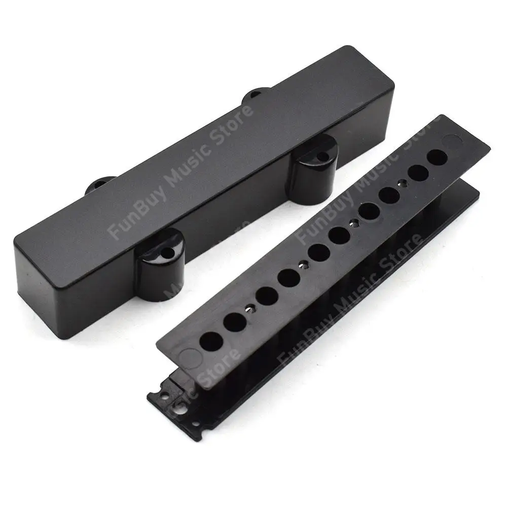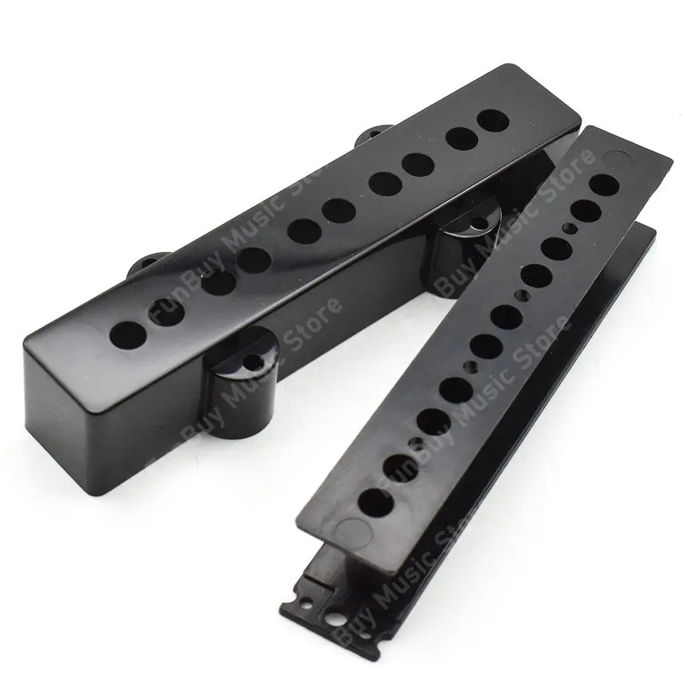 Enhance your electric bass guitar with this high-quality black JB style pickup cover set. Crafted from durable plastic, these covers feature a smooth, polished finish that adds a professional touch to your instrument. The set includes both open and closed types, with lengths of 100mm and 103mm respectively, ensuring compatibility with a wide range of 4, 5, and 6-string Jazz Bass style basses. The designs balance functionality with a clean aesthetic—some covers are solid for a minimalist look, while others have precise circular holes for wiring and component access. Easy to install, these covers are a perfect upgrade for your bass, offering protection and a streamlined appearance.