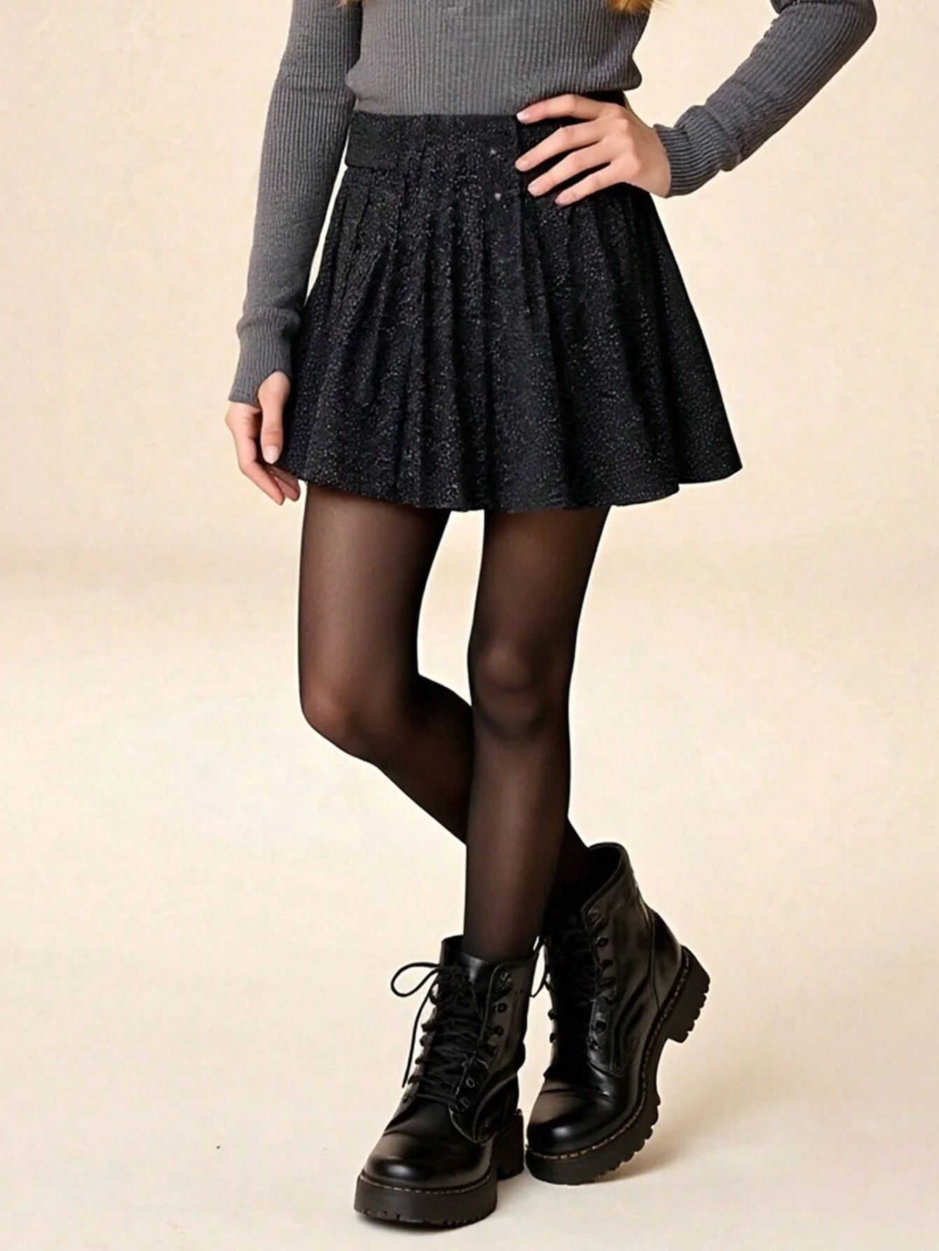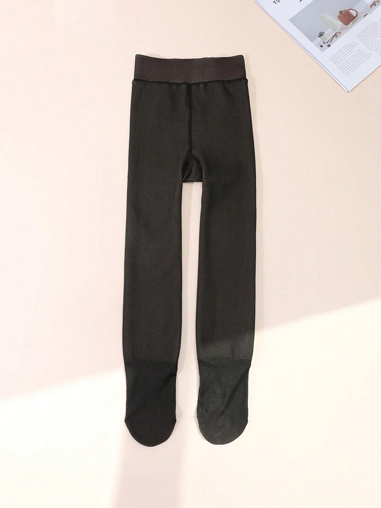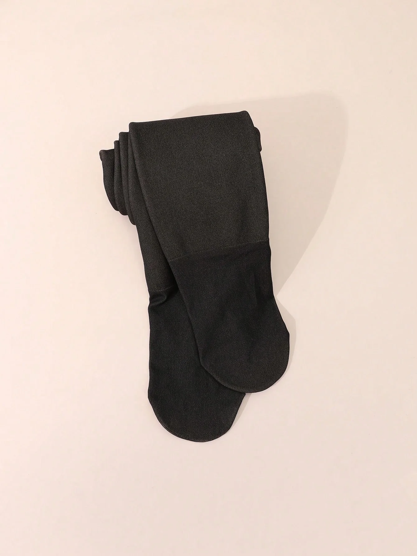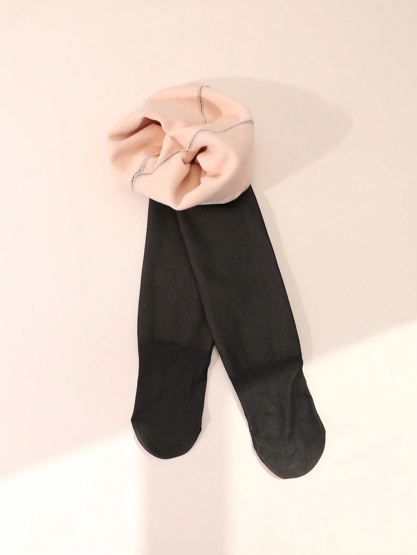 Step into comfort and style with these this pair of kids' fleece-lined leggings, perfect for winter adventures. Crafted from a blend of polyester and elastane, these tights offer a sleek, lightweight feel while providing exceptional insulation. Their solid black color makes them versatile for any outfit, easily coordinating with skirts, dresses, or pants. The plush fleece interior ensures warmth and coziness during cold days, maintaining a fuzzy softness against delicate skin. Designed in a European-American style, these tights emphasize a snug, true-to-size fit that allows children to move freely. Whether for everyday wear or special occasions, these tights combine practicality with modern aesthetic appeal—keeping your child warm without sacrificing style.