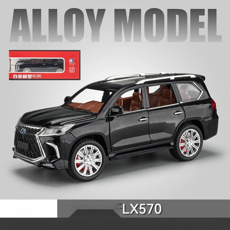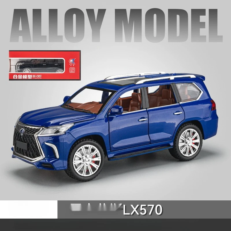 Elevate your collection with this meticulously crafted 1:24 scale Lexus LX570 SUV diecast model. Its realistic details, interactive light and sound features, and premium metal construction make it a standout piece. Ideal for display or as a gift for adult car enthusiasts, this model combines aesthetic appeal with durable craftsmanship. Whether you choose classic black, vibrant blue, pristine white, or unique no-box variants, each piece offers a true-to-life representation of this luxury off-road vehicle. Add a touch of elegance and rugged charm to your collection with this superb diecast model.
