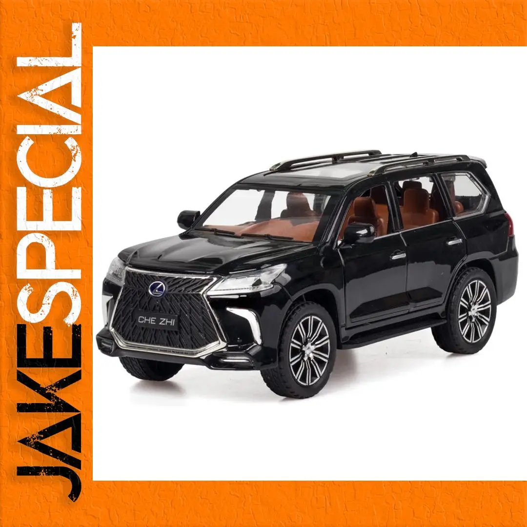 Experience the realism of this high-quality 1:24 scale Lexus LX570 SUV diecast model, showcasing a sleek, glossy black finish that highlights its luxurious and rugged design. Crafted from durable metal, it features intricate details such as a prominent chrome-framed grille with a mesh pattern, realistic alloy wheels with textured rubber tires, and carefully sculpted body contours. The clear headlights and taillights with red and white accents add a modern touch, while black window trim and roof rails enhance its off-road appeal. The interior, visible through the transparent windshield, hints at refined brown seats and dashboard details. This model perfectly blends artistic craftsmanship with authentic SUV styling, making it an impressive addition to any collection or display.